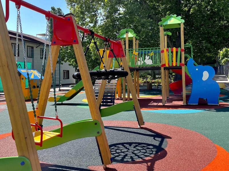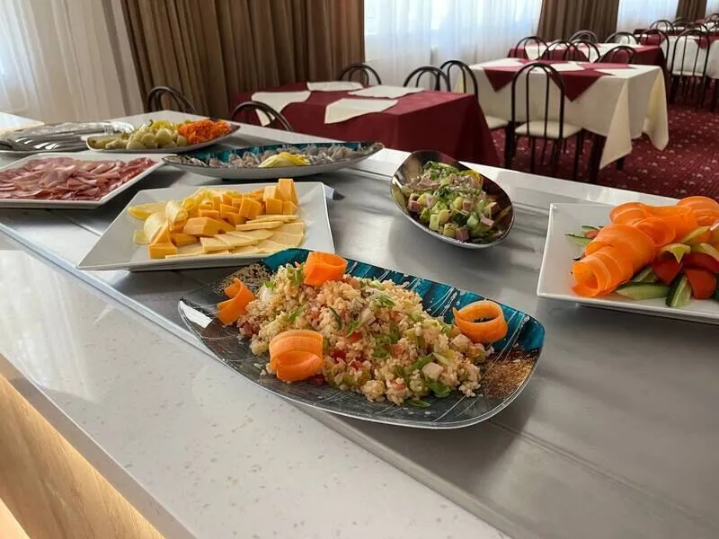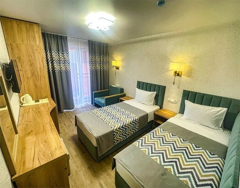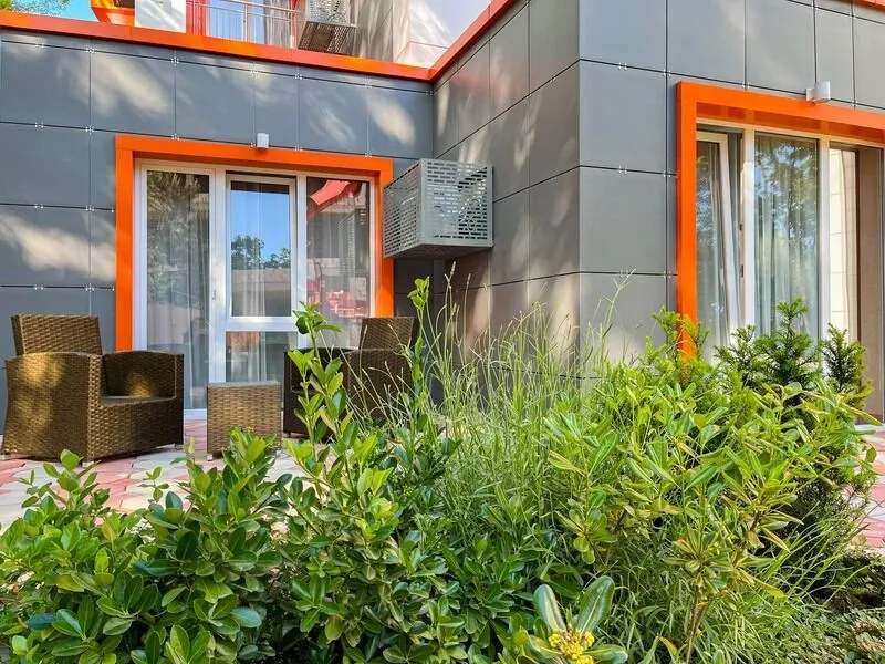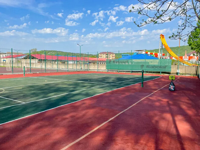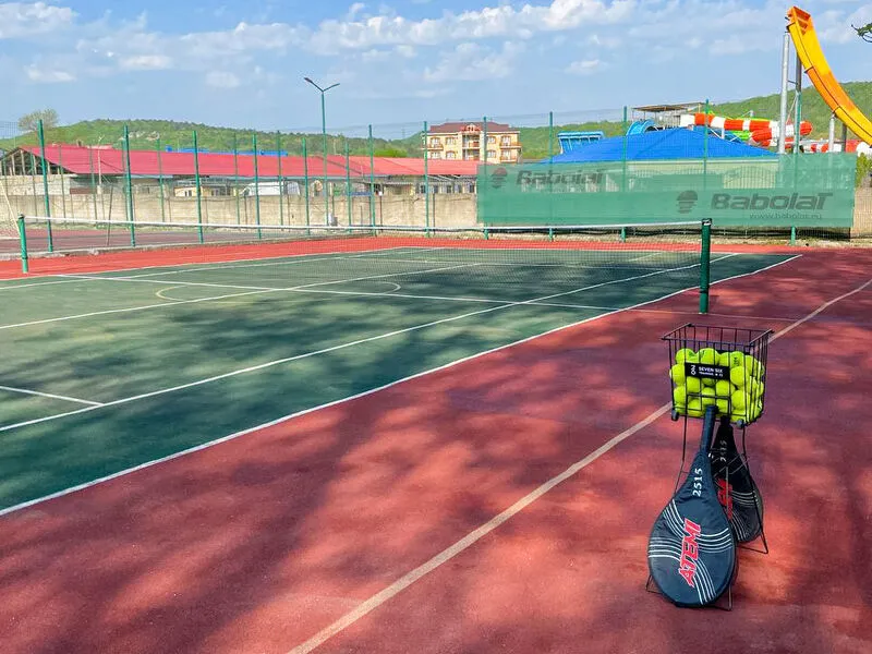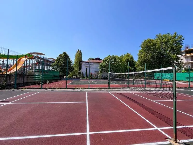 Развитая инфраструктура включает в себя эстрадную площадку для дневных и вечерних анимационных программ, зоны отдыха, детские и спортивные площадки, а также тренажерный зал. Территория облагороженная, вся в зелени и цветах. Есть бассейн и терраса для загара и зонтики от яркого солнца. Также можно искупаться в море, которое находится в 0,6 км. Поблизости есть аквапарк.