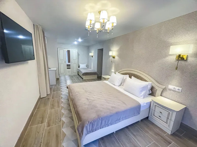 Предлагается размещение в обновленных уютных и стильных номерах от Стандартов до Апартаментов. Номера оснащены спутниковым TV, кондиционером, холодильником. В ванной комнате есть фен, набор полотенец для каждого гостя и необходимые гигиенические принадлежности.