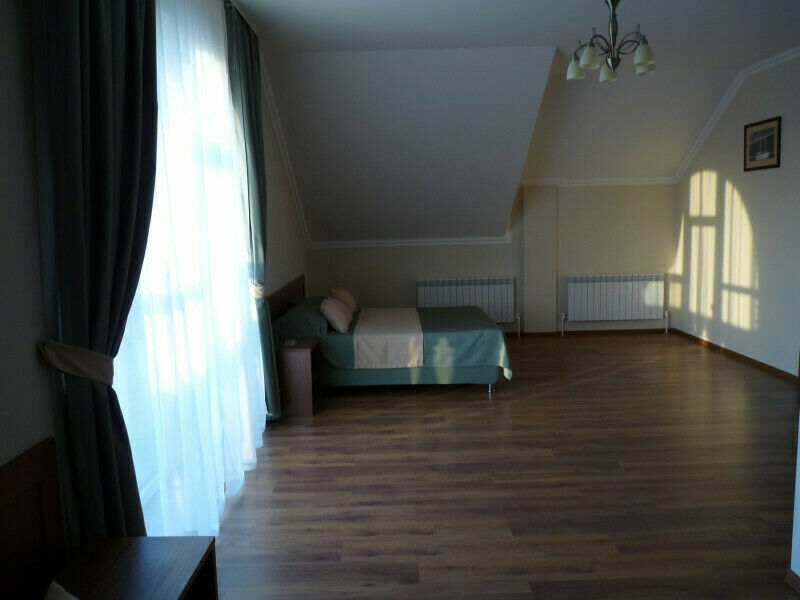 Администрация гостевого дома рада предложить гостям просторные и светлые номера, которые чудесно подойдут как для семьи, так и для дружеской компании, состоящей из 3-4 человек. Мебель в номерах очень удобная и практичная. На балконе имеется чайный столик и кресла. На цокольном этаже расположена столовая, где можно полакомиться сытными блюдами домашней кухни. В 10 минутах прогулочного шага находится песчаный пляж. Также вблизи гостевого дома отдыхающие смогут найти набережную, рынок, продуктовые магазины, аквапарк, кафе, экскурсионные киоски, цирк и кинотеатр.