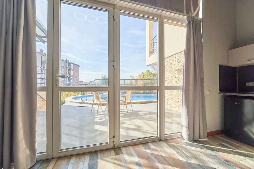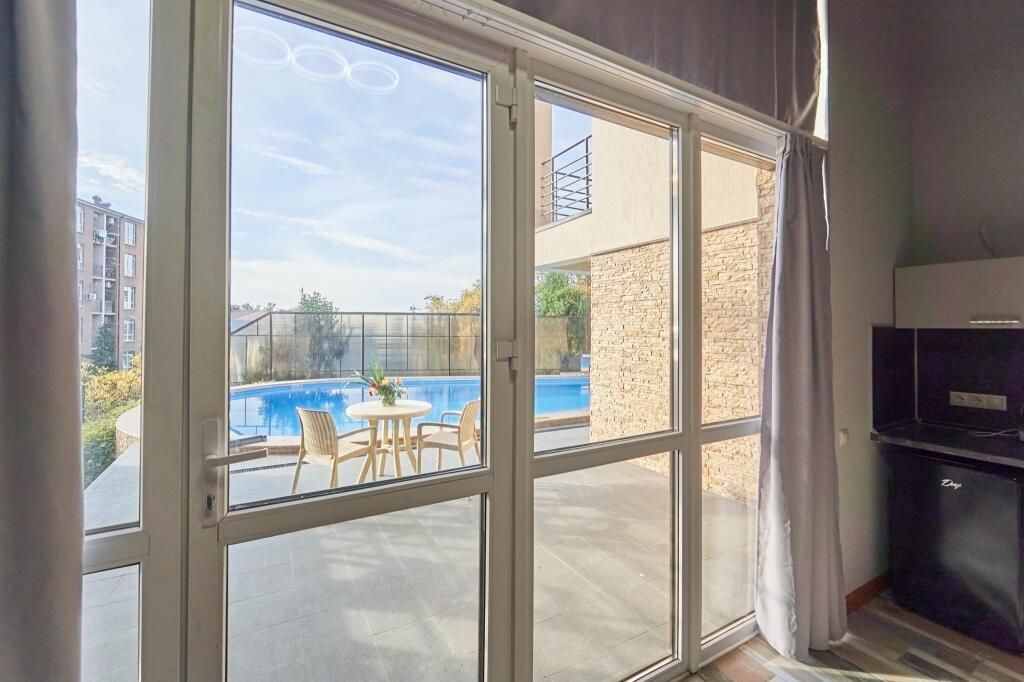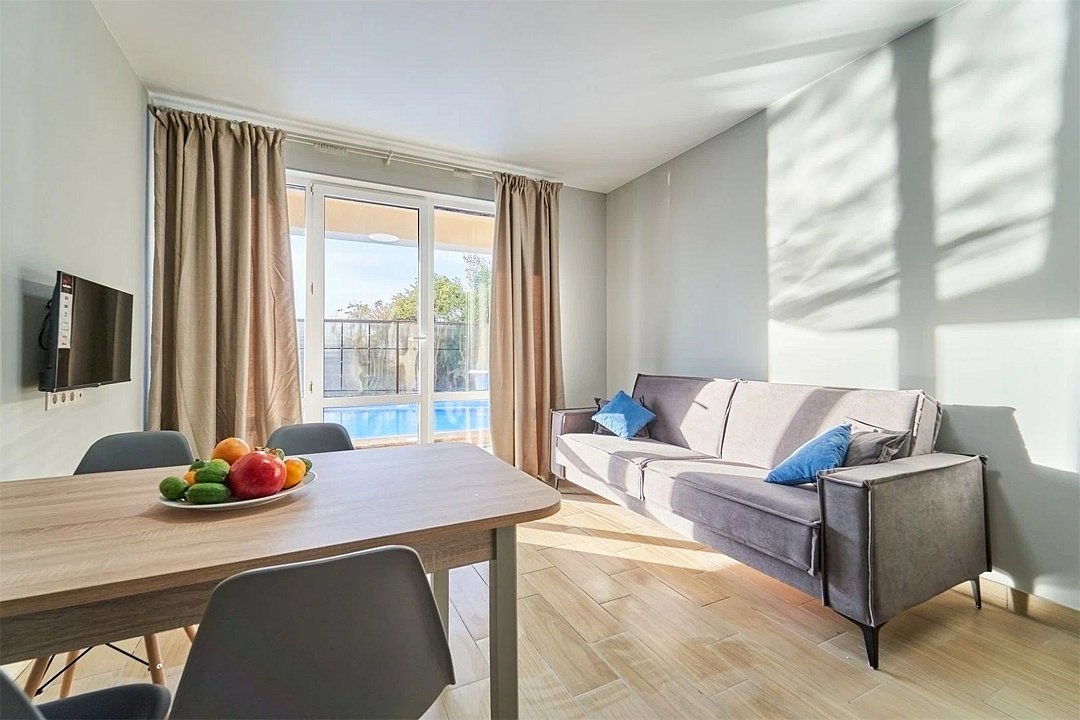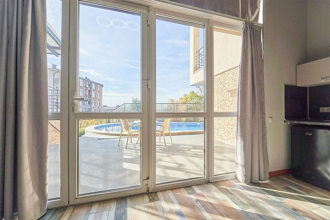 Двухкомнатный номер с видом на бассейн.