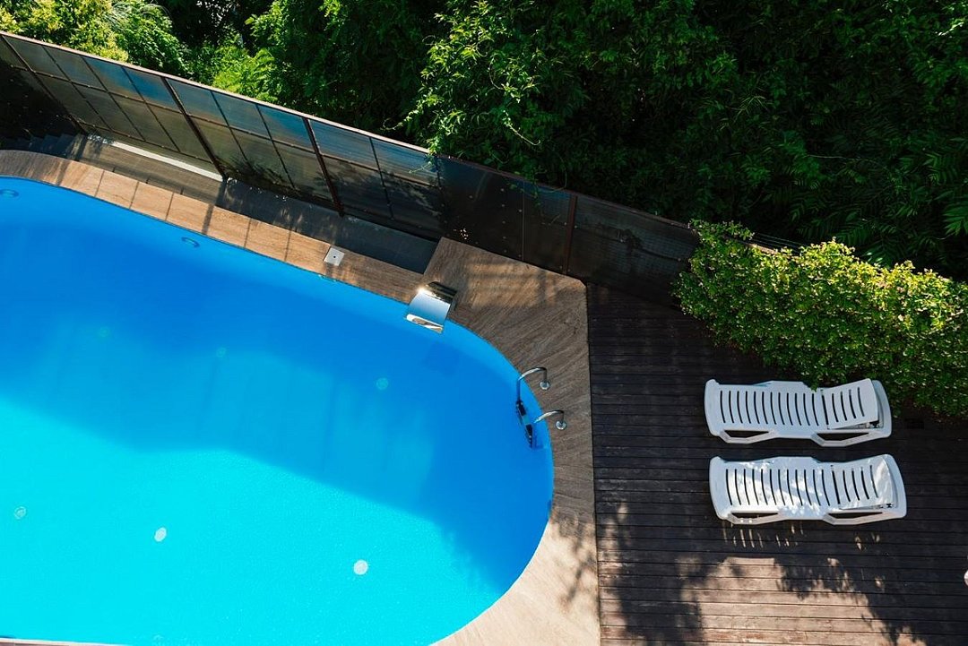 Тип бассейна: открытый бассейнВода в бассейне: подогреваемый бассейнРядом с бассейном: шезлонги, зонтики, полотенцаПериод работы: круглогодичноКруглогодично работает бассейн с подогревом , который меняет свою цветовую гамму под ритм музыки или настроения.