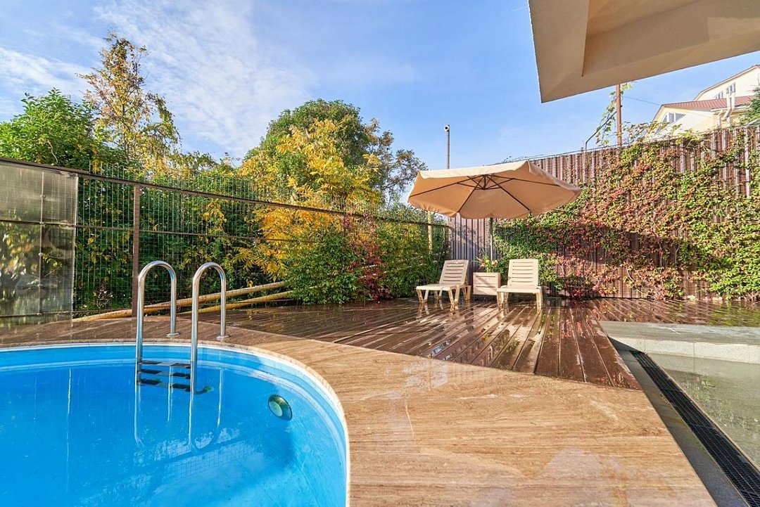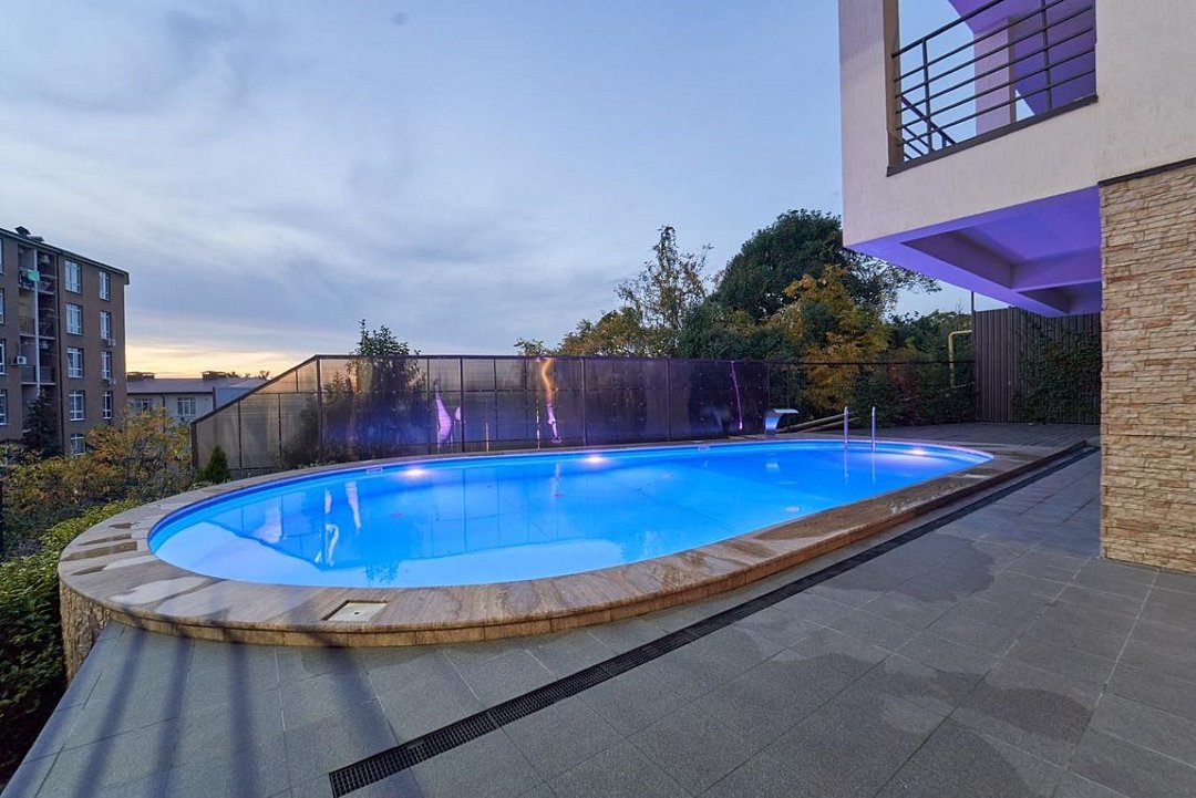 Круглогодично работает бассейн с подогревом , который меняет свою цветовую гамму под ритм музыки или настроения.