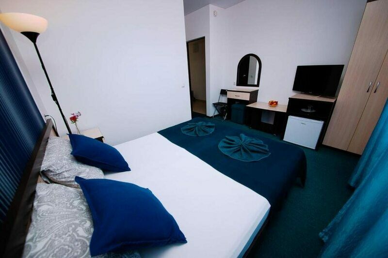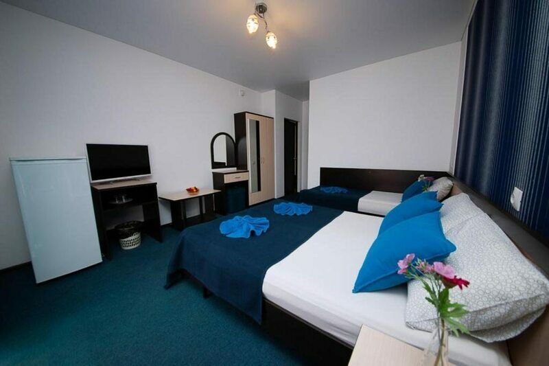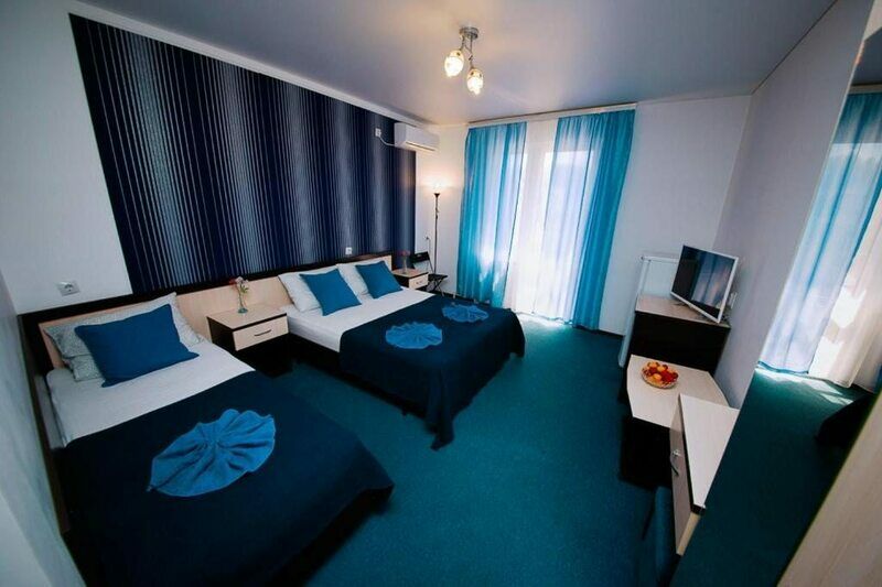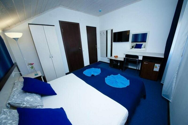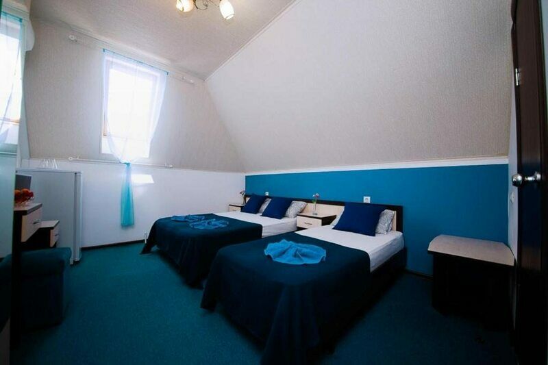 Трехэтажный корпус гостевого дома разместился на тенистой зеленой улочке, расположенной среди частного сектора. В распоряжении гостей двух- и трехместные стандартные номера с удобствами. Интерьеры комнат оформлены в глубоких синих оттенках, а все номера укомплектованы необходимо техникой: есть мини-холодильник и плазменный телевизор, установлена сплит-система.