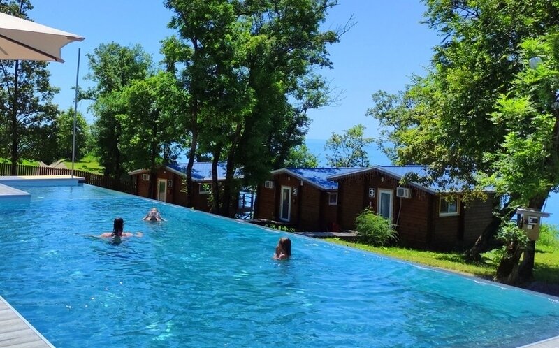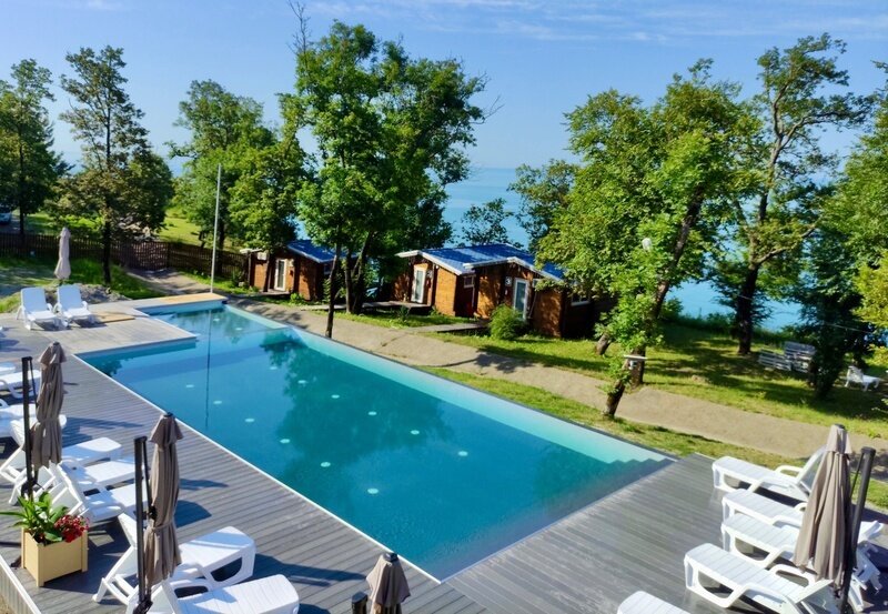 База отдыха «На высоте» - это комфортабельные деревянные дома с шикарным бассейном на территории, на побережье Черного моря, в 7 километрах от Туапсе. Расположены в стороне от автотрассы и шума курортных поселков, на живописном плато в лесу.