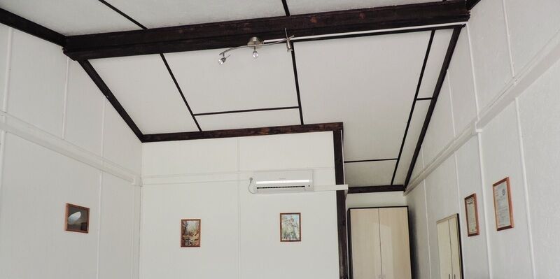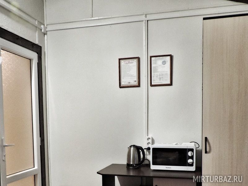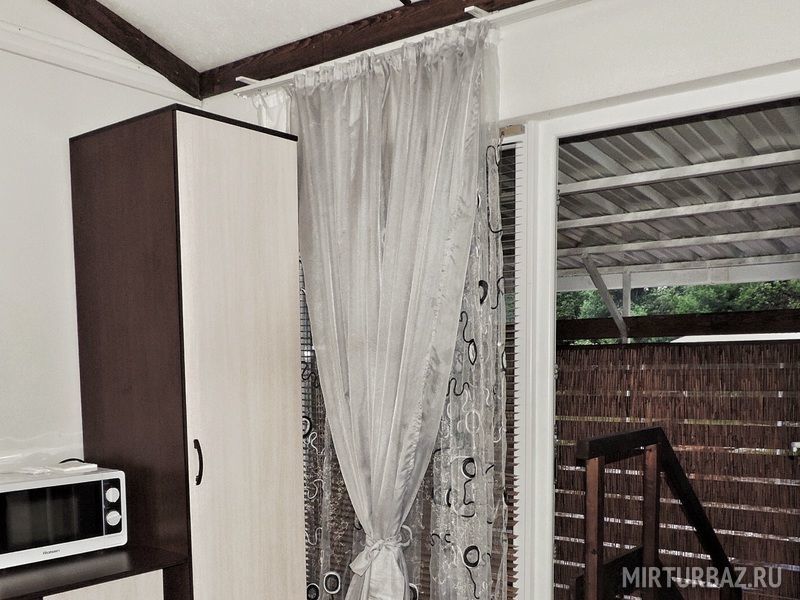 В номере: телевизор с плоским экраном, сплит-система, рабочий стол, отопление, отдельный вход, звукоизоляция, ковролин, москитная сетка, шкаф/гардероб, гипоаллергенный, чистящие средства, душевая кабина, фен, бесплатные туалетные принадлежности, ванная комната, тапочки, холодильник, микроволновая печь, электрический чайник, кухонные принадлежности, журнальный столик, пуфики, трюмо, мебель на улице, полотенца, белье, 1 большая двуспальная кровать и диван.