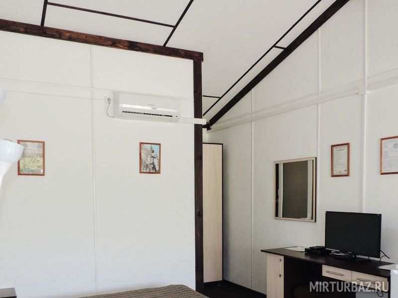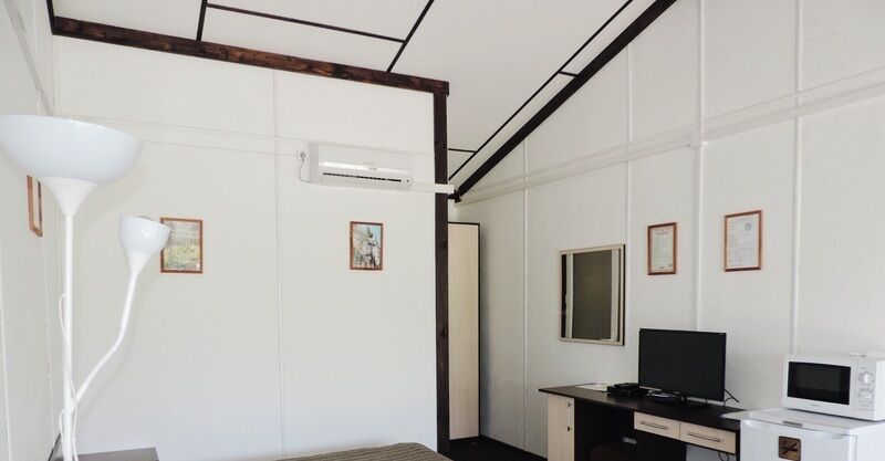 В номере: телевизор с плоским экраном, сплит-система, рабочий стол, отопление, отдельный вход, звукоизоляция, керамо-гранит и ковролин, москитная сетка, шкаф/гардероб, гипоаллергенный, чистящие средства, душевая кабина, фен, бесплатные туалетные принадлежности, ванная комната, тапочки, холодильник, микроволновая печь, электрический чайник, кухонные принадлежности, журнальный столик, кресла, трюмо, мебель на улице, полотенца, белье, 1 большая двуспальная кровать.