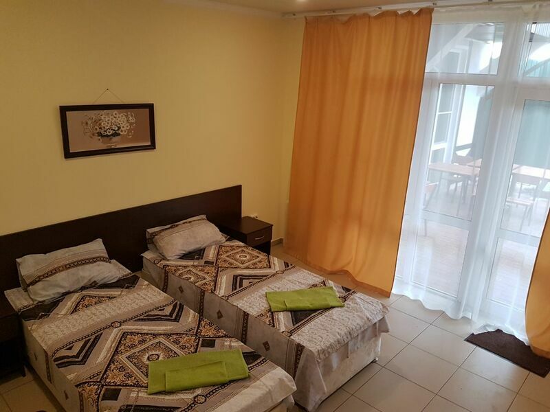 Двухэтажный гостевой дом, выполненный в фахверковом стиле, размещен на небольшой закрытой территории в тихом квартале города. Отдыхающим предлагаются двух-, трех- и четырехместные комфортабельные номера с удобствами. Каждый номер оснащен кондиционером, сейфом, телевизором, душем.