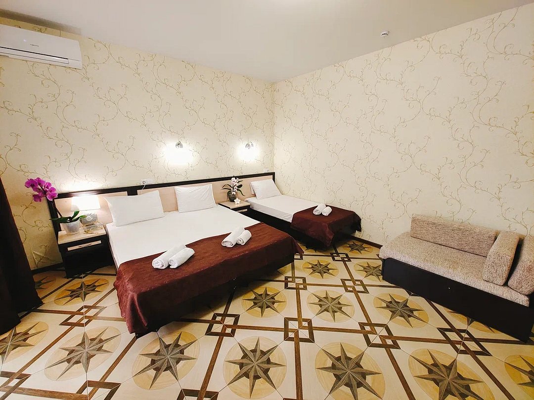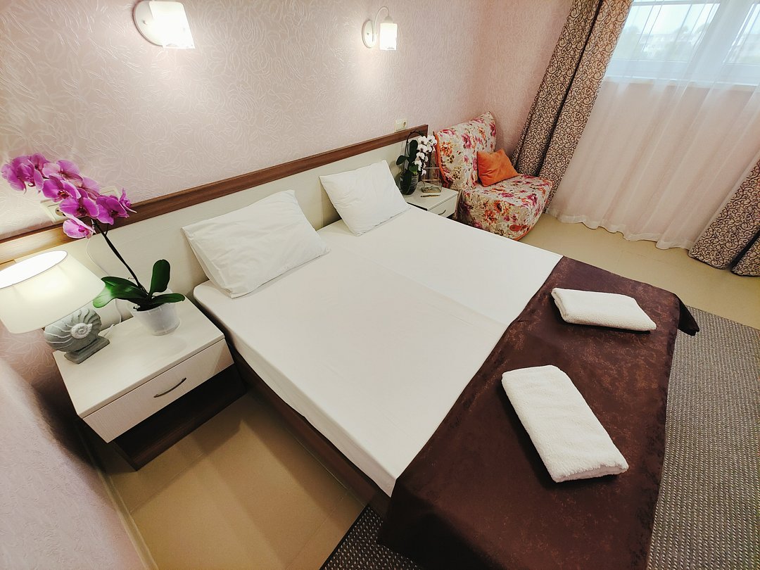 Для удобства, мы объединили два корпуса. И теперь Гостевой дом состоит из 2-х корпусов — Наутилус и Корвет (которые разделяются только дорогой). Каждый из корпусов имеет свою изюминку. На территории корпуса Наутилус (где расположены номера категории Комфорт, Полу-люкс) расположен большой бассейн с подогревом, столовая, а на территории корпуса Корвет (где расположены номера категории Стандарт) —общая кухня, батут, горки для детей. И для гостей доступна территория и преимущества обоих корпусов.