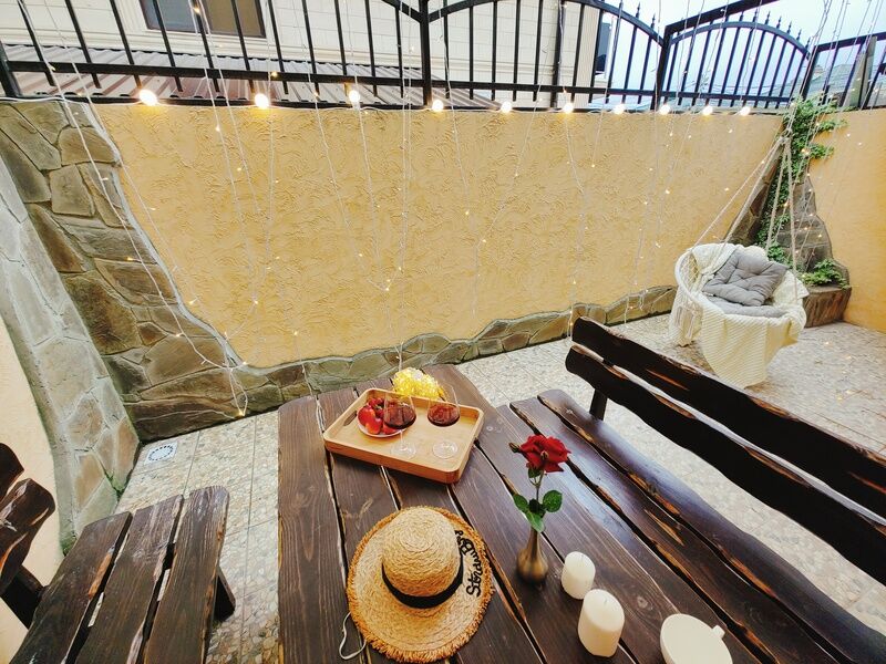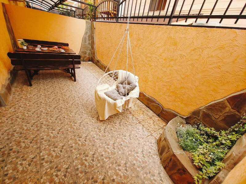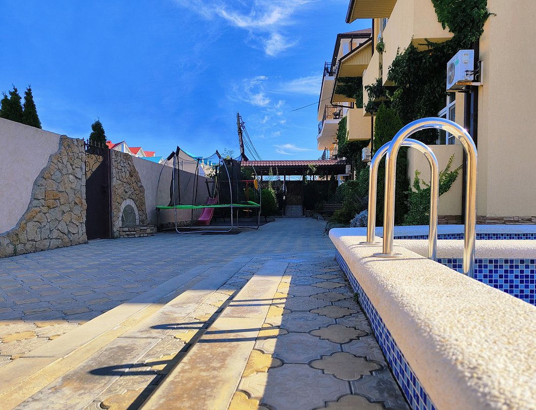На территории есть бассейн с подогревом, в котором гости смогут проводить не только жаркие летние дни, но и насладиться им весной и осенью. Мангал и уютный зеленый дворик позволят гостям комфортно провести время. Также есть развлечения для детей.