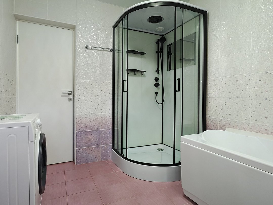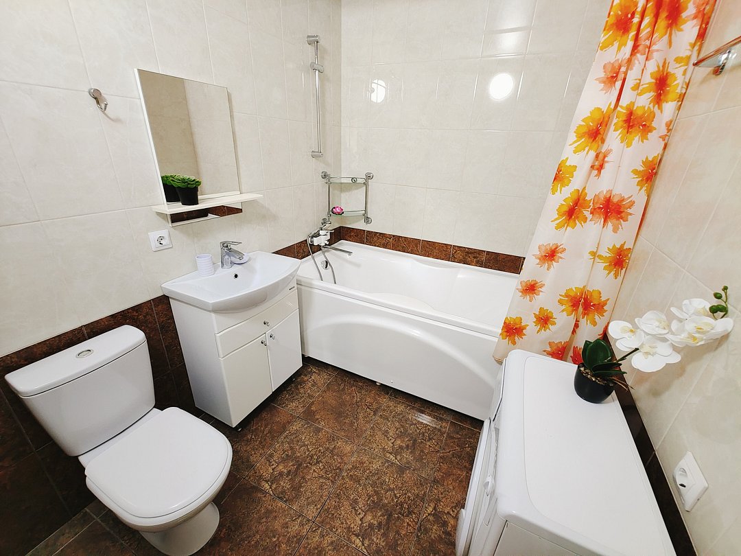 Ванная: душевая кабина/ванная, туалет, раковина, зеркало, стиральная машина, гладильная доска, утюг.