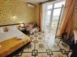 Двуспальная кровать, прикроватная тумбочка, туалетный столик, вешалка, шкаф, кондиционер, мини-холодильнк, телевизор, ванная комната с душевой кабинкой, балкон.