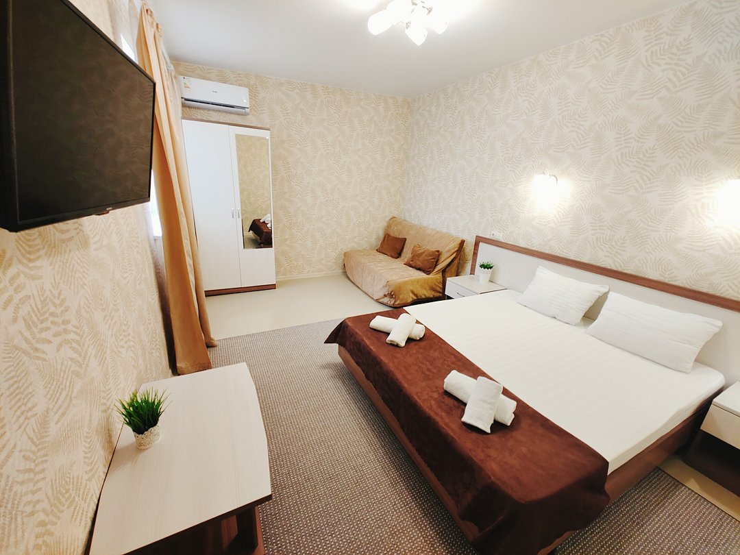 2-ая спальная комната: двуспальная кровать, диван -кровать, прикроватные тумбочки, журнальный столик шкаф, ТВ, кондиционер