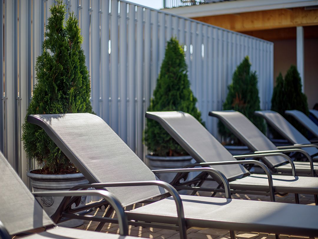Открытый бассейн с подогревом и современной системой фильтрации воды — место, где можно забыть о повседневных заботах и погрузиться в атмосферу релаксации. Шезлонги вокруг бассейна создают идеальные условия для наслаждения отдыхом.