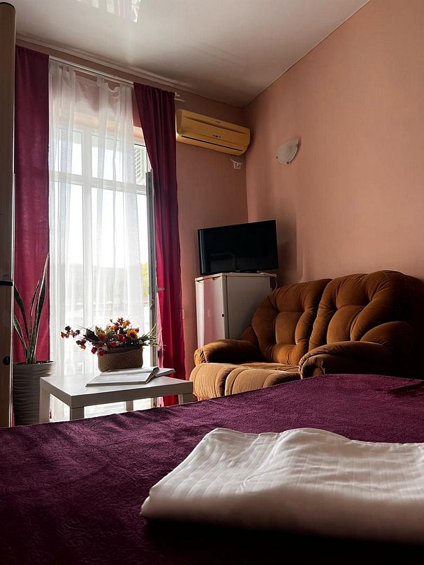 Для размещения отдыхающих в отеле предлагаются 8 номеров различных категорий с балконами, кондиционерами и телевизорами в номерах. Для детей подготовлены двухъярусные кровати.
