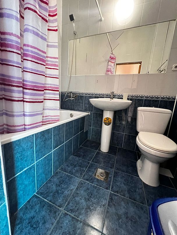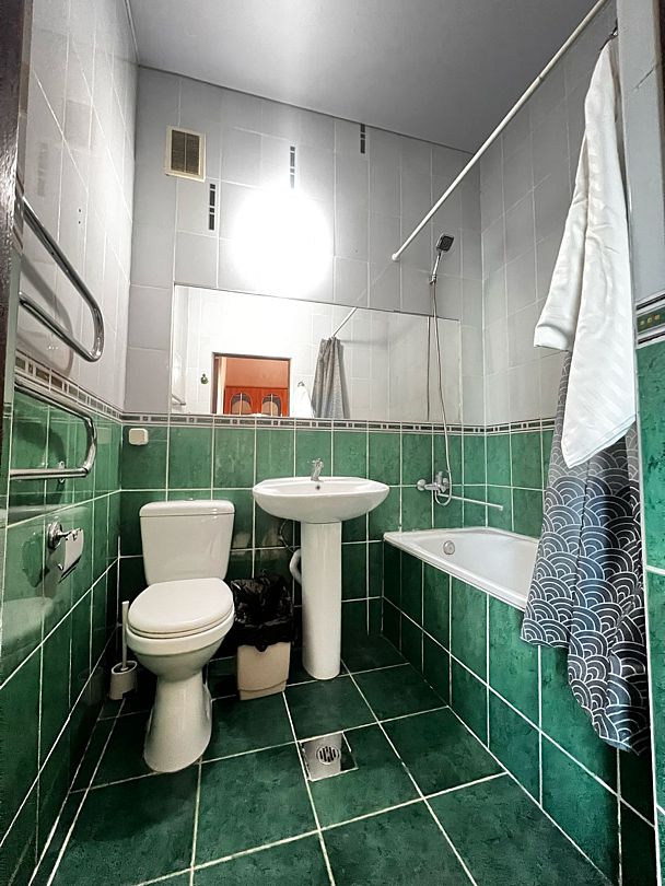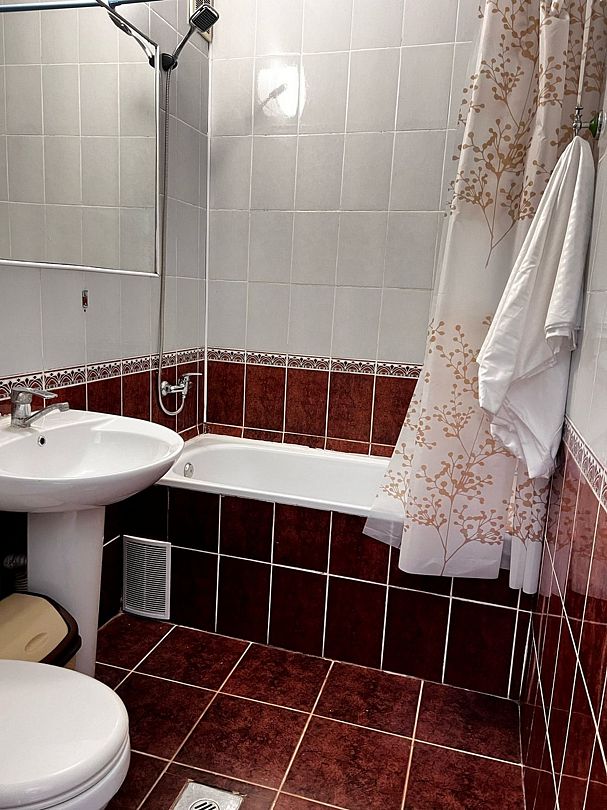 Индивидуальная ванная комната: ванна, раковина, туалет.