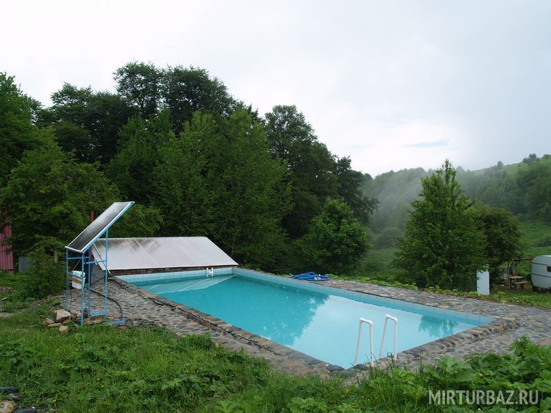 Вода, в нем постоянно подогревается, поэтому летом, несмотря на высокогорное расположение бассейна – вода очень теплая. Можно смело нырять даже ночью, ну а днем запросто устроить вечеринку у бассейна вместе с друзьями.