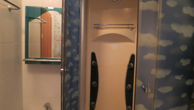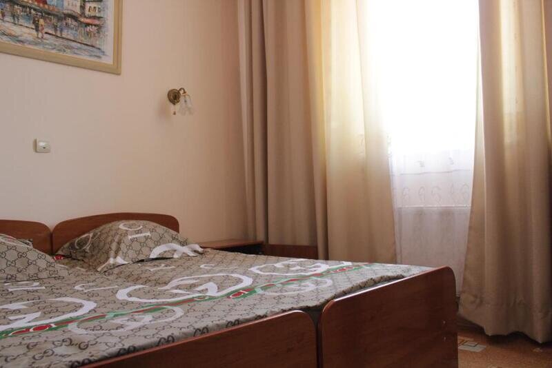 Номер оборудован всем необходимым для комфортного проживания: широкая 2-спальная кровать, прикроватные тумбочки, телевизор, кондиционер, холодильник, интернет. Имеется гардеробное помещение с вешалками для одежды и полкой для багажа и обуви. Отдельный компактный санузел с душем, раковиной и унитазом в номере. Номер расположен на третьем этаже.