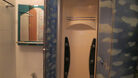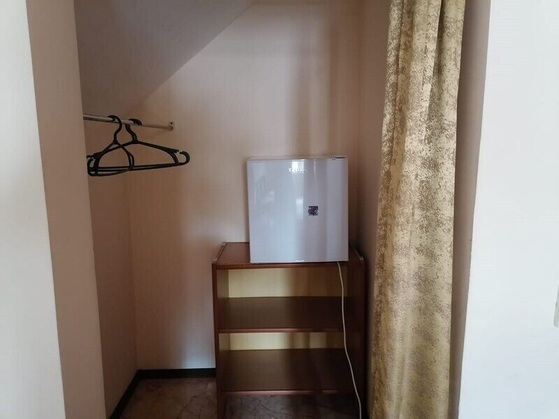 Жилая комната оборудована всем необходимым для проживания: двуспальная кровать, прикроватные тумбочки, телевизор, кондиционер, интернет, холодильник. Имеется шкаф для одежды. Санузел с душевой кабиной на этаже. На этаже три номера.