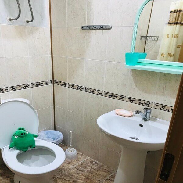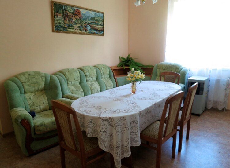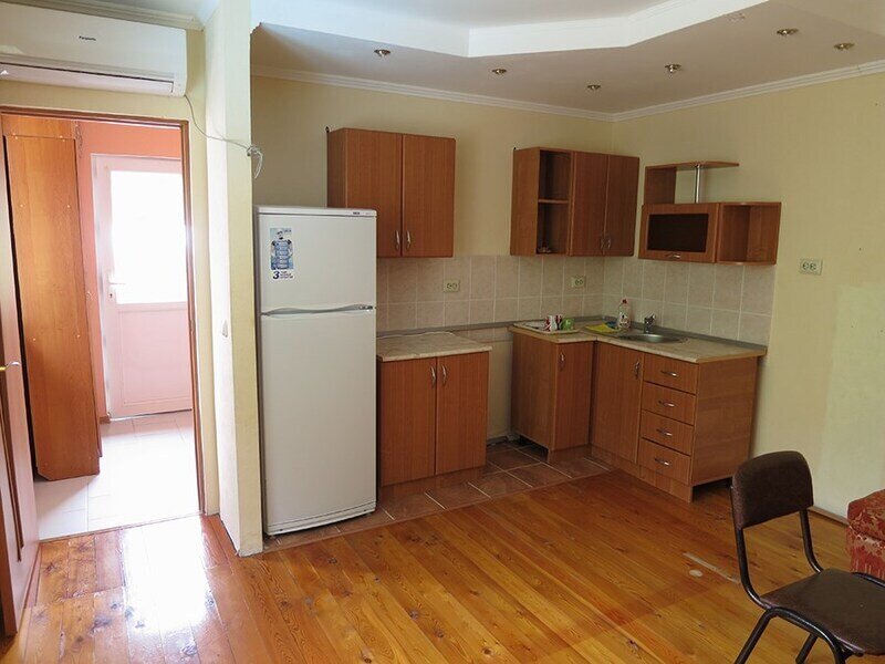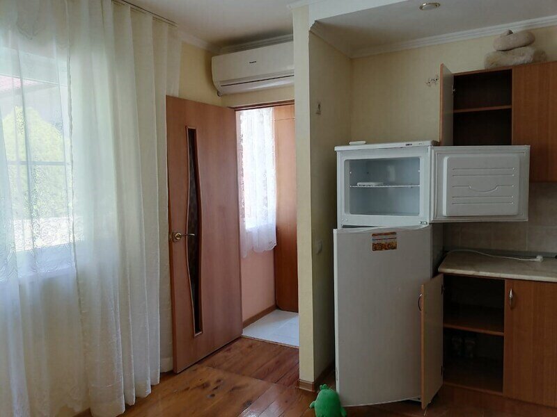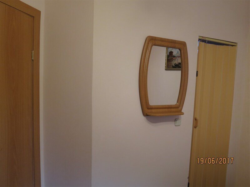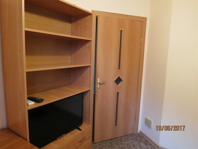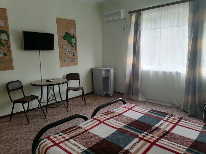 Жилая комната оборудована всем необходимым для проживания: двуспальная кровать, 2 кресла-кровати, прикроватные тумбочки, телевизор, кондиционер, санузел на этаже, душ в номере, интернет. Имеется шкаф для одежды и обуви. Расположен на первом этаже.