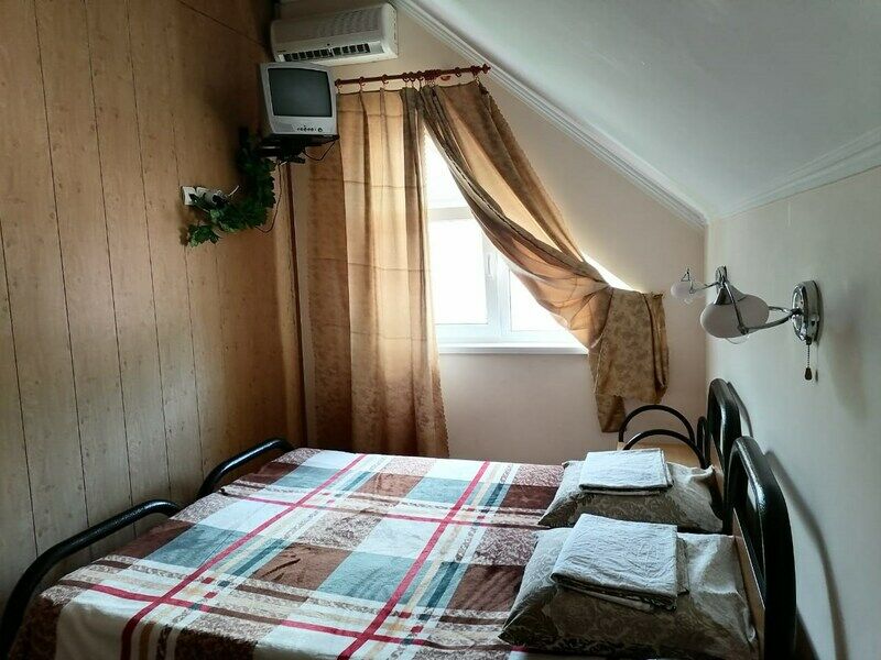 Комната для 3-х человек оборудована всем необходимым для комфортного проживания: двуспальная кровать, кресло-кровать, прикроватные тумбочки, телевизор, кондиционер, интернет, холодильник. Имеется гардеробное помещение с вешалками для одежды и полкой для багажа и обуви. В номере душ и санузел. По желанию, можно разместить дополнительное спальное место. Расположена на втором этаже. Есть балкон на мансарде. Прекрасный вид на кавказские горы.