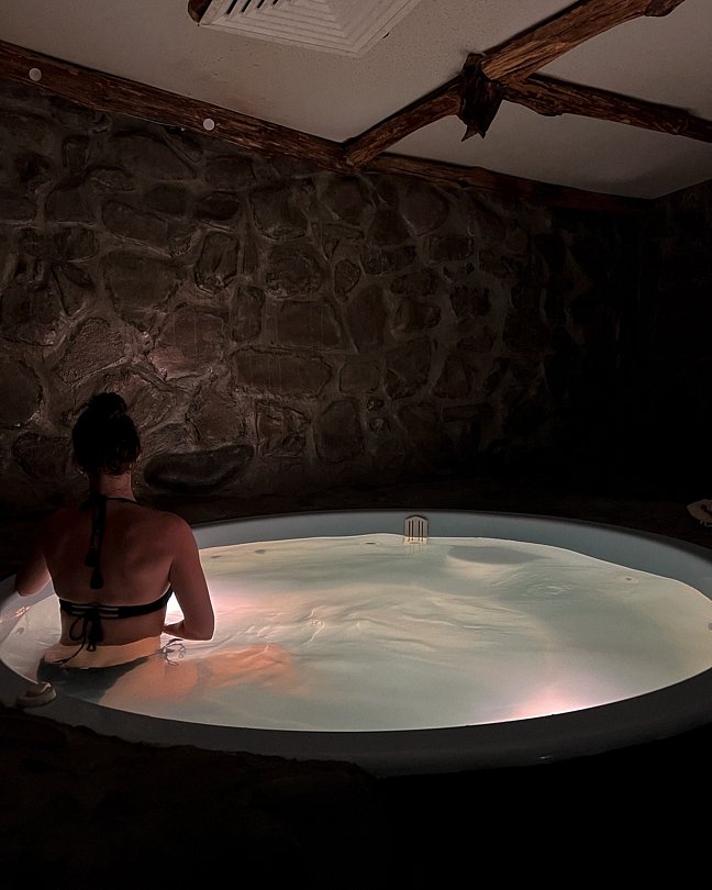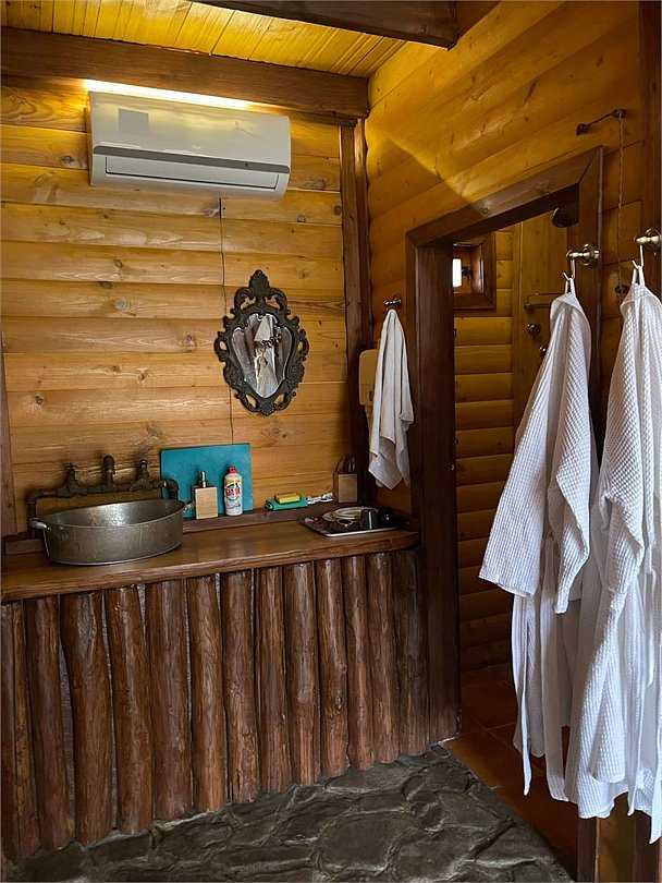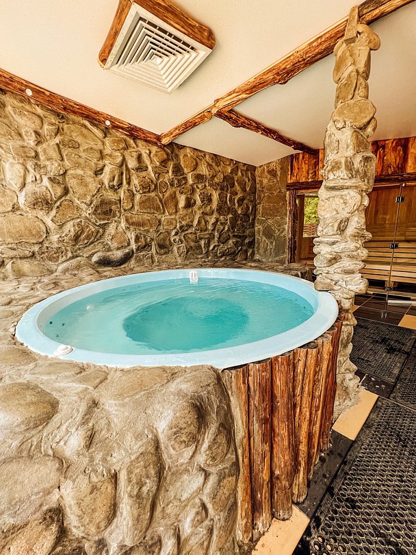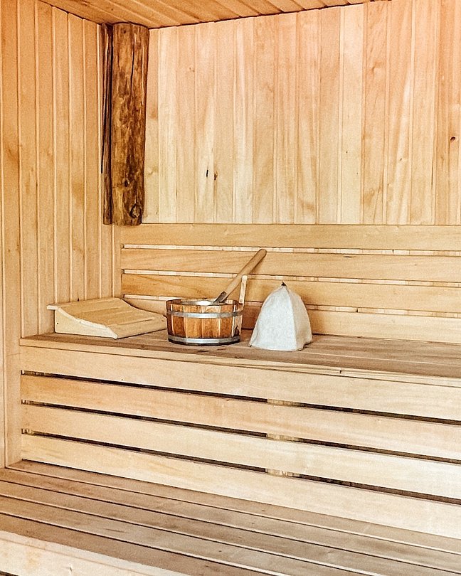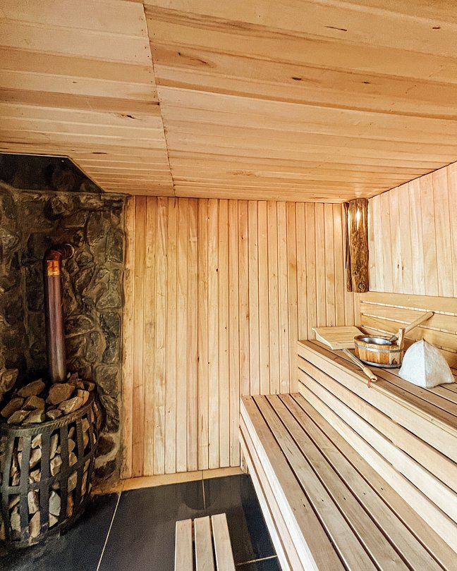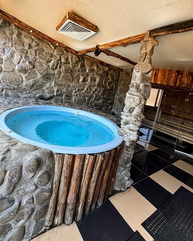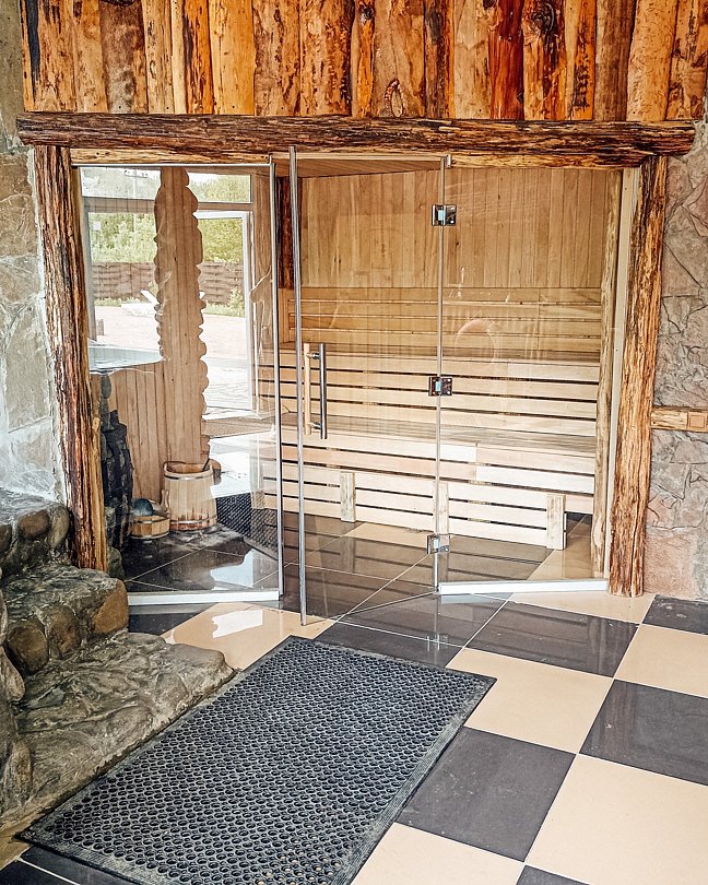 После активного дня гостей ждет спа-комплекс, где можно расслабиться с помощью массажа, посетить сауну и погрузиться в гидромассажную ванну. Также на территории имеются русская баня с чаном и открытый круглогодичный бассейн.