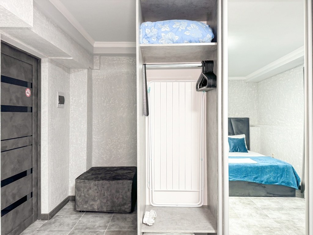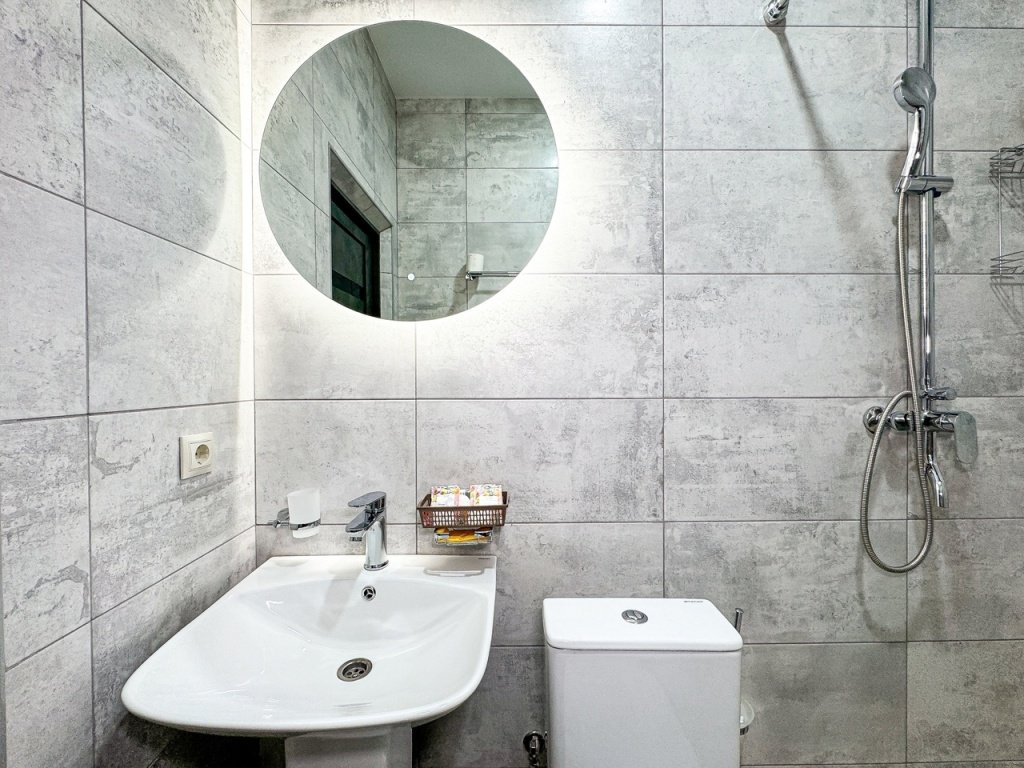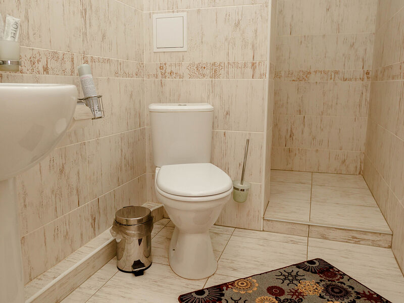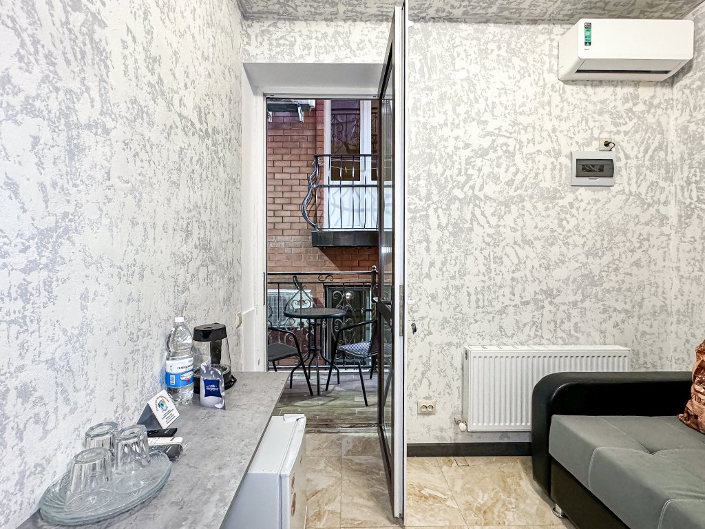 Маленький по площади однокомнатный номер со своим душем и туалетом для одного гостя.