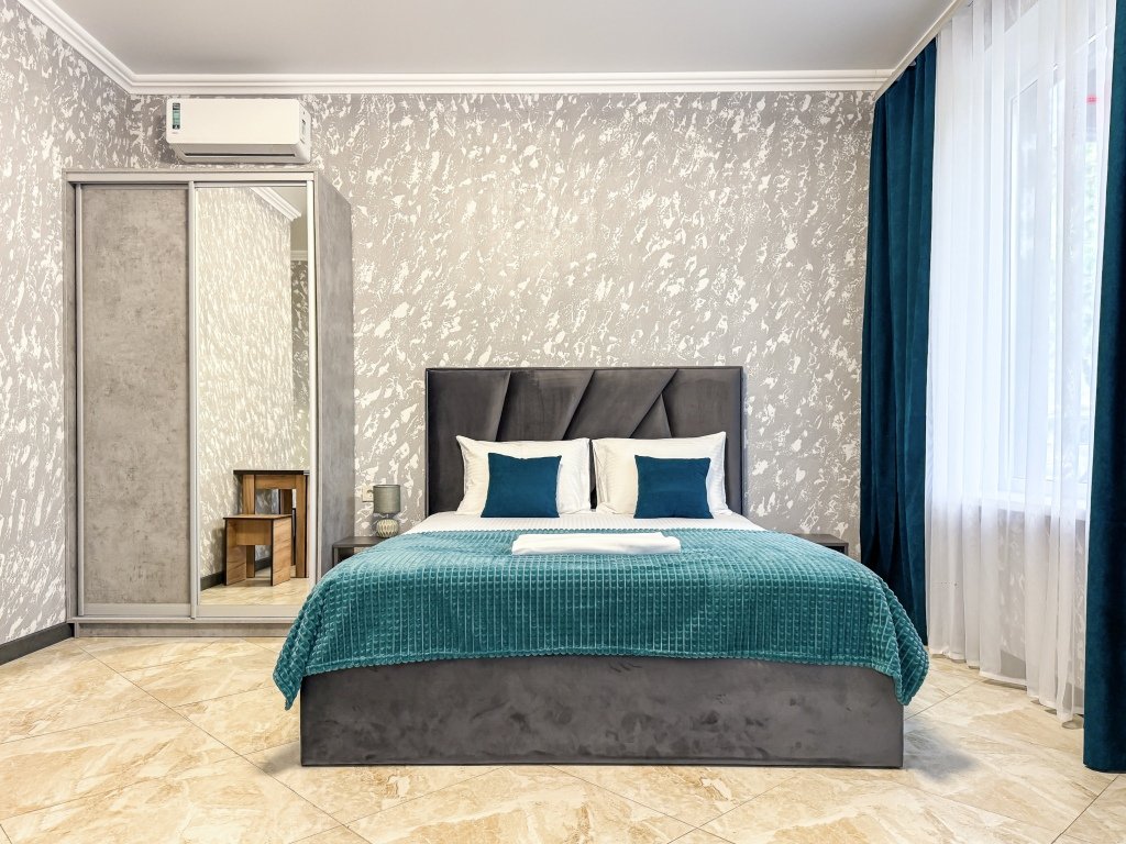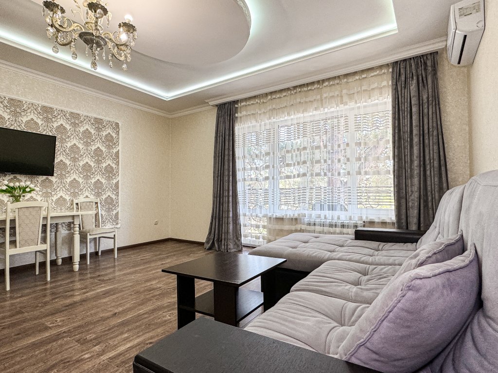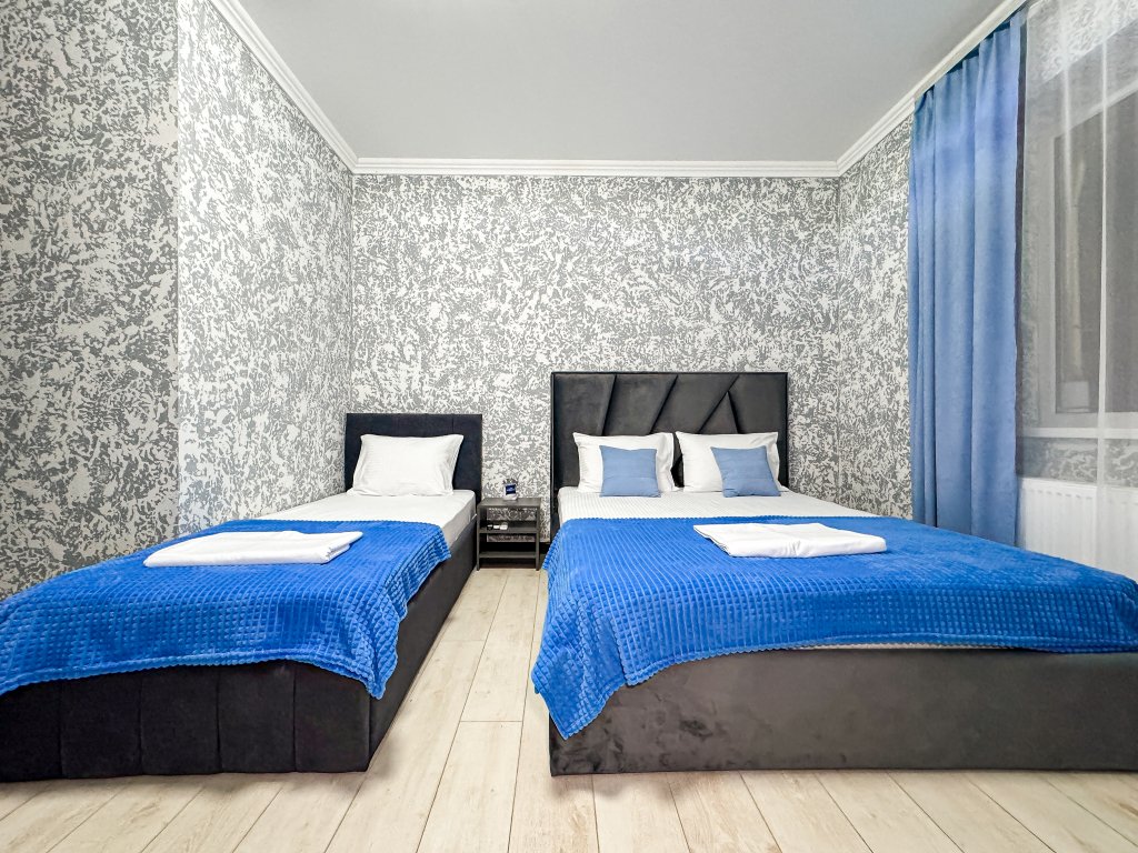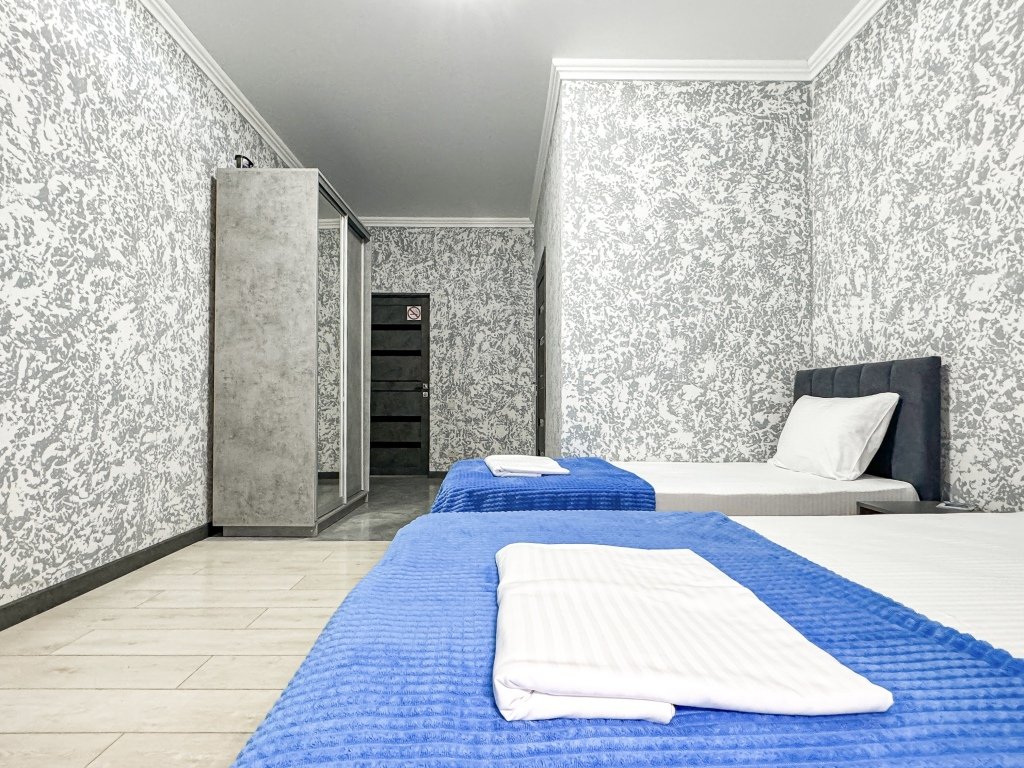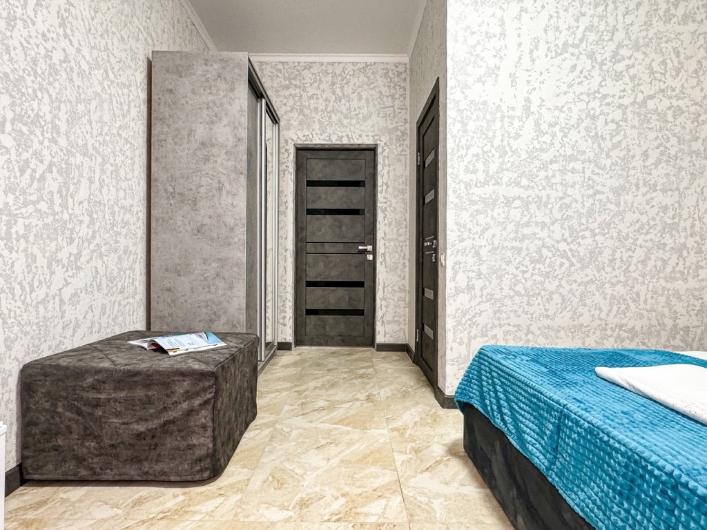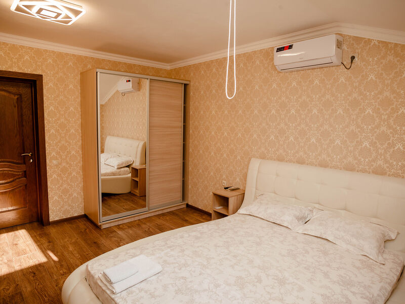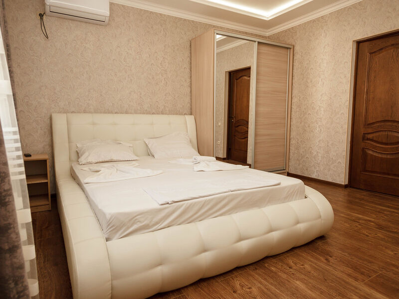 2-комнатный номер, две полноценно отдельные комнаты, кондиционер и телевизор в каждой спальне. Из 3-х таких номеров в одном во второй спальне диван вместо кроватиУслуги и удобства