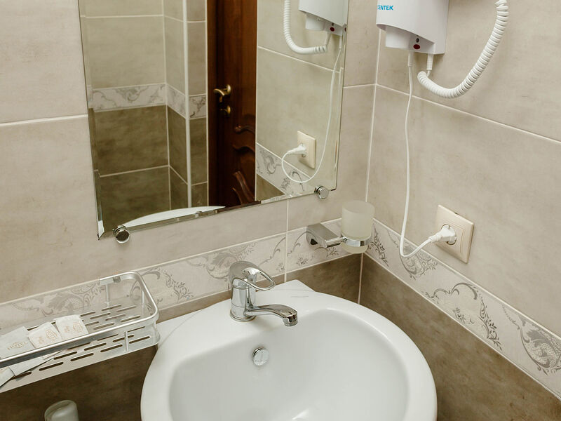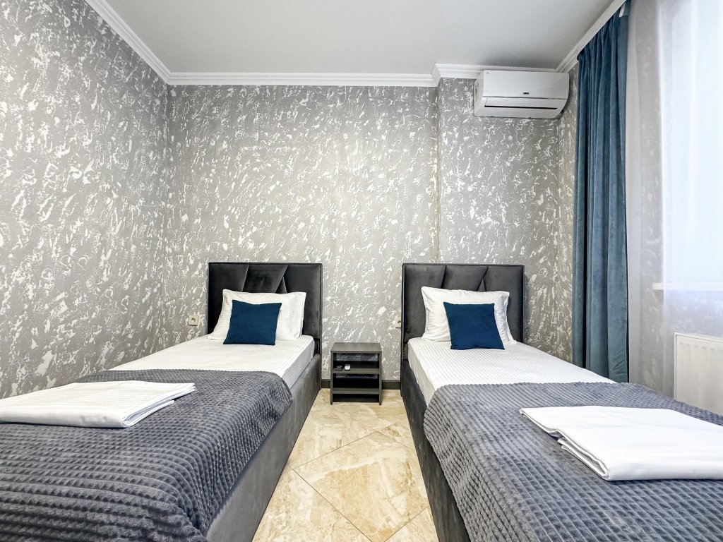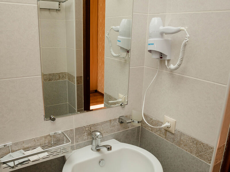 Спальные места в номере – две односпальные кровати, которые совместить нельзя. Недорогой вариант для 1 взрослого и 1 ребенка. Все условия для комфортного проживания.