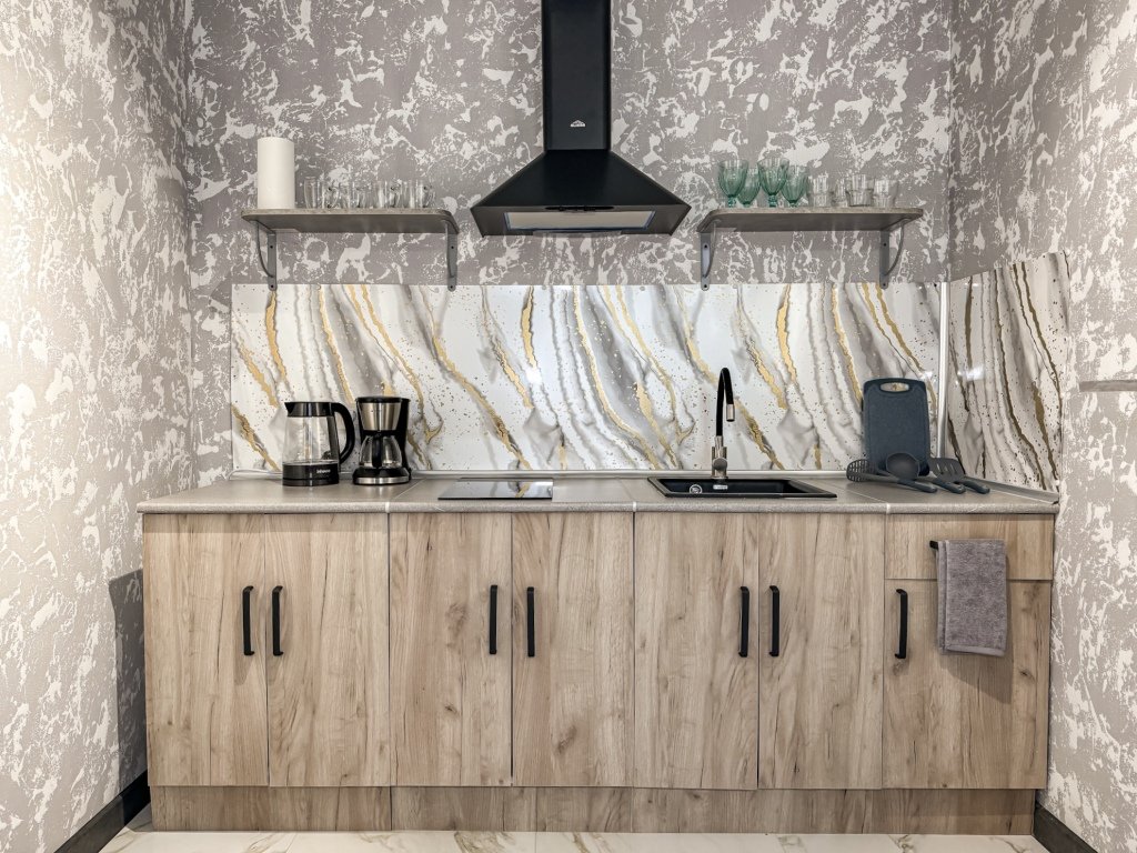 Корпус отеля – это отдельно стоящее здание на 18 номеров разной вместимостью от 2 до 6 гостей. В каждом номере имеется кондиционер, душ, туалет, балкон (не во всех), телевизор, холодильник, чайник, чашки – обязательные удобства в каждом номере. 10 из 18 номеров – двухкомнатные. Имеется оборудованная кухня, доступ дается индивидуально.