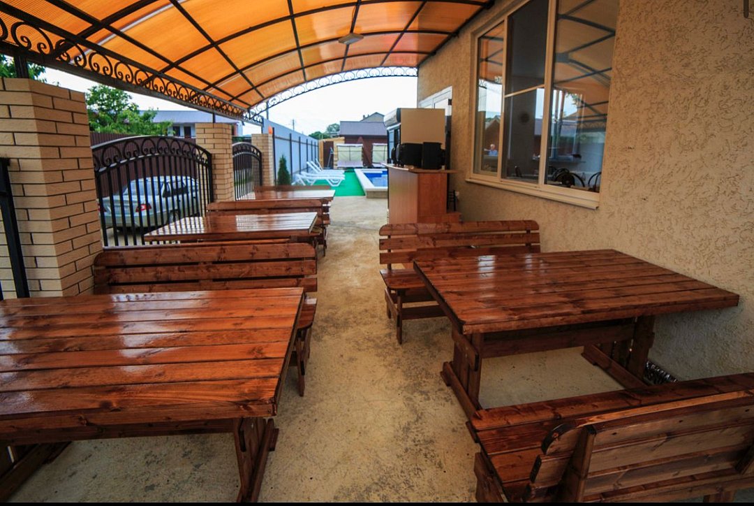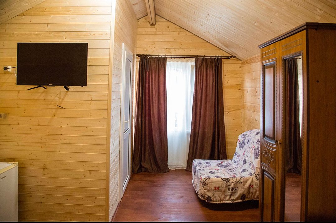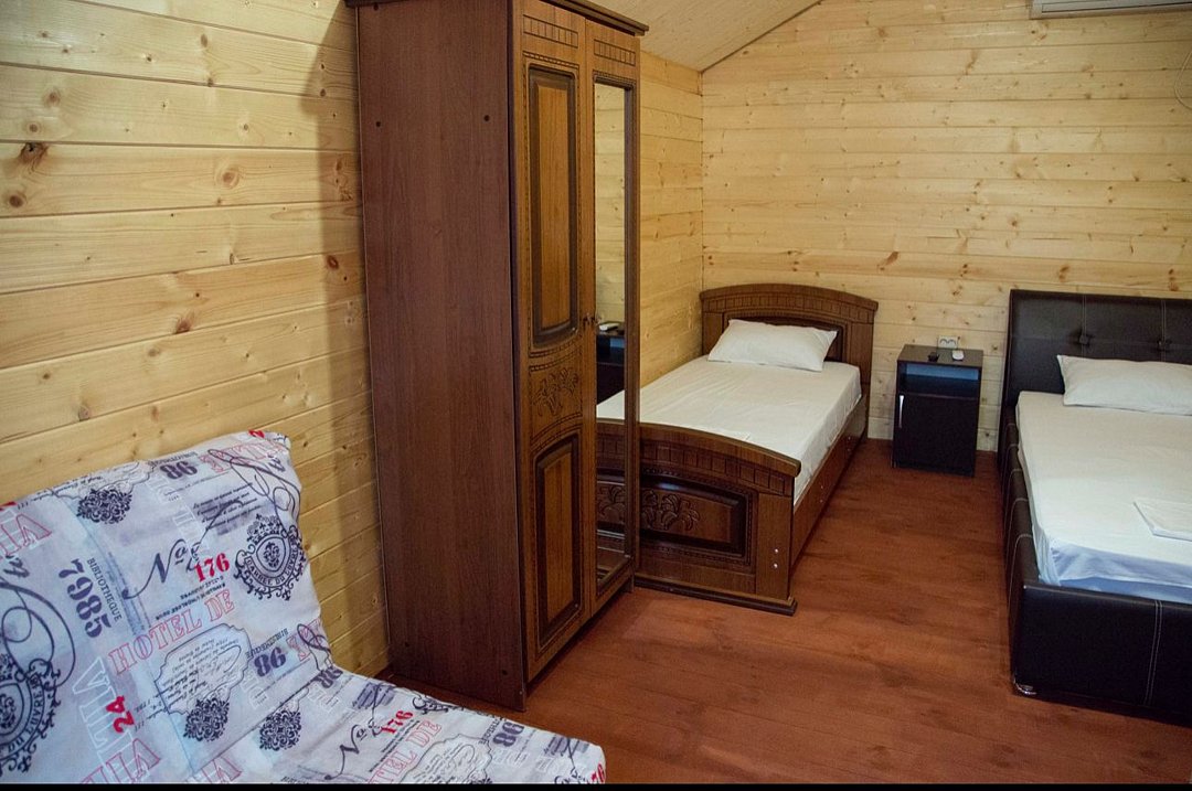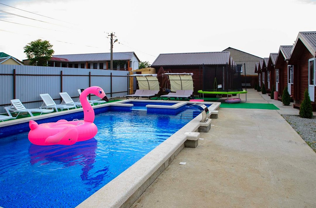 Гостям предлагаются уютные домики из сосновых чисто экологических брусков, домики оснащены современной техникой холодильник, кондиционер, телевизор, мебель. Есть интернет Wi-Fi, беседки для отдыха. Большой подогреваемый бассейн с детской зоной, питание предоставляется за дополнительную плату. Есть мангальная зона, места для парковки. Гостевой дом находится в центре, до моря 700 м, все инфраструктуры в шаговой доступности, территория огорожена.