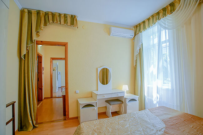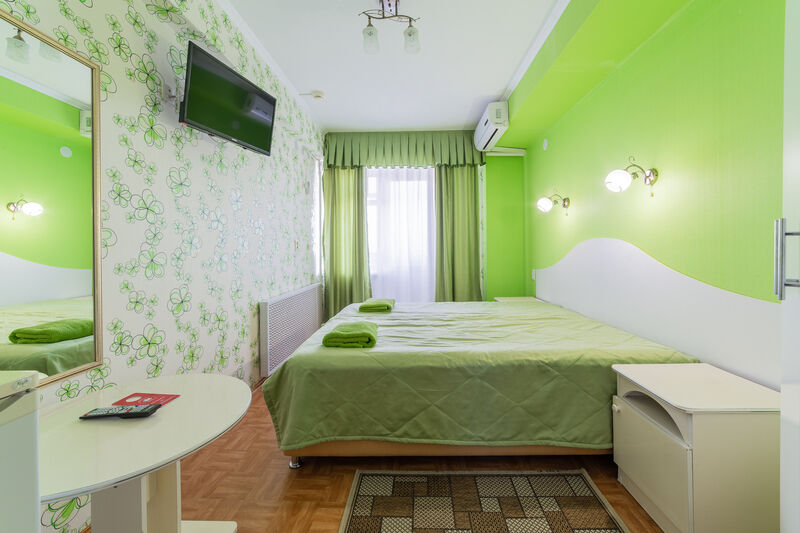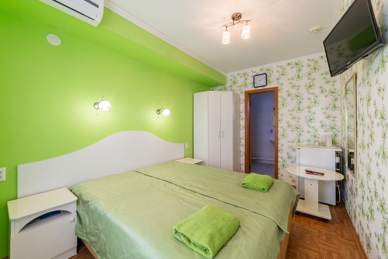 - Номера с кондиционером, холодильником, чайником и ванной комнатой.
