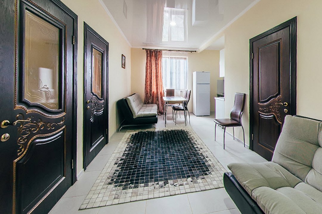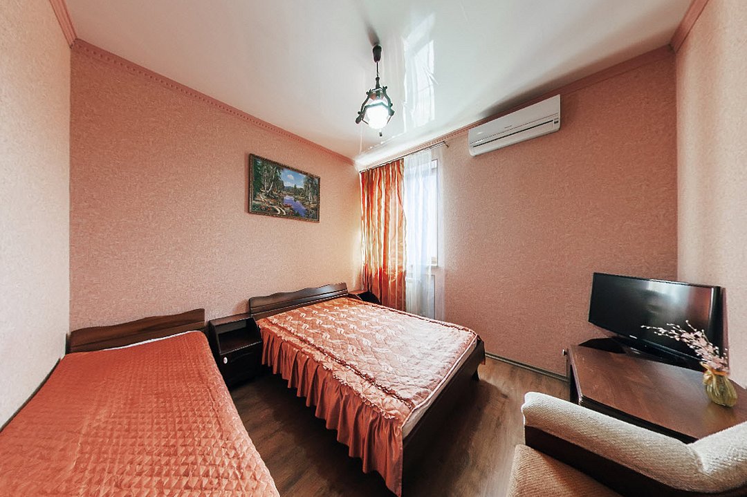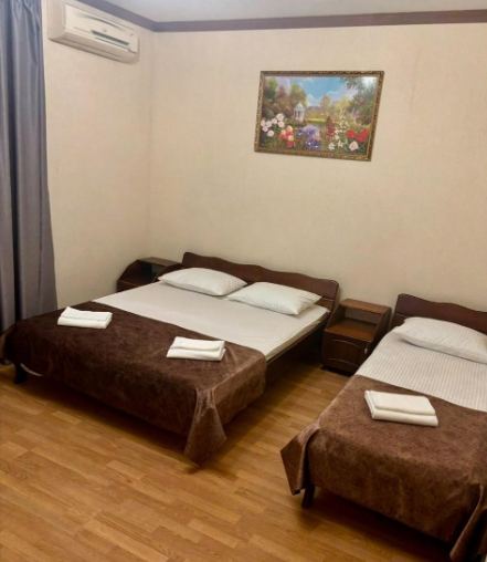 Интерьер гостевого дома сдержанный и изысканный. К услугам гостей комфортабельные номера с кондиционером, телевизором и мини-холодильником.