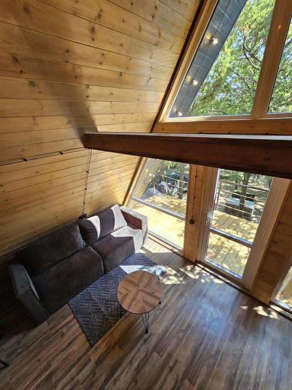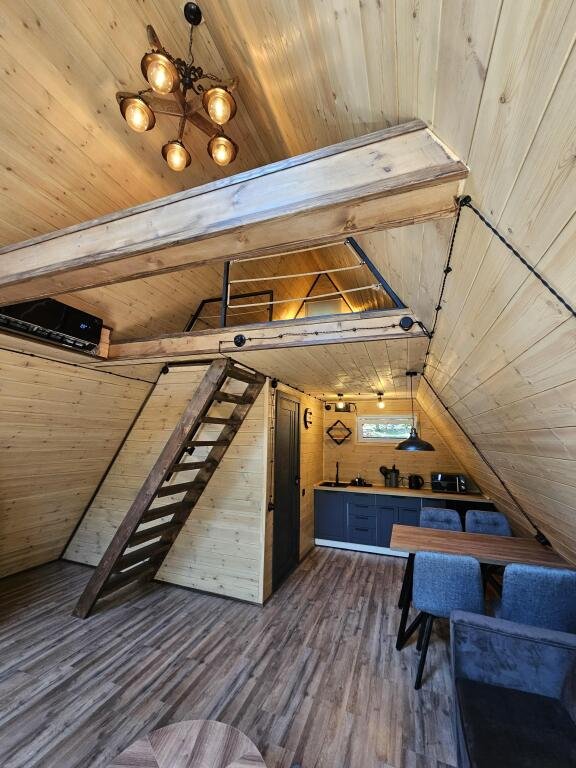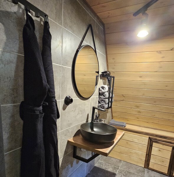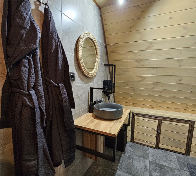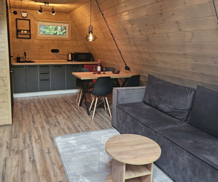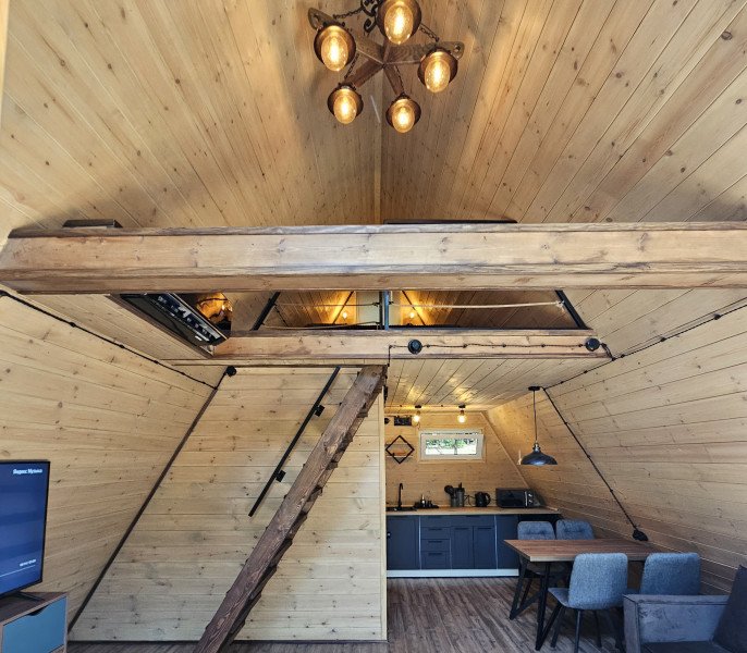 Четыре уютных домика с панорамным видом ждут вас в прохладном лесном тенёчке. Интерьер наполнен духом природы: натуральное дерево, мебель и аксессуары ручной работы, а современная техника и ванная комната добавят комфорта в ваш отдых
