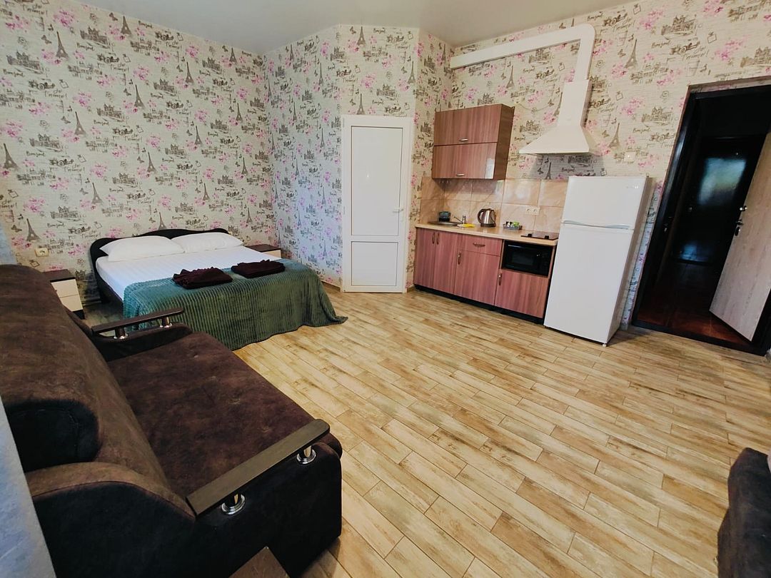 Уютный однокомнатный номер с кухней , для 3-4 гостей, площадью 20 кв. м на 1 этаже.