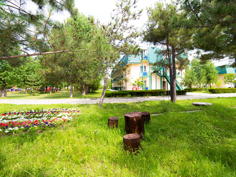 Комплекс из шести корпусов высотой в два, три и четыре этажа находится на обширной территории, утопающей в зелени и цветах. В парке пансионата – более 500 деревьев лиственных и хвойных пород, есть раритеты.