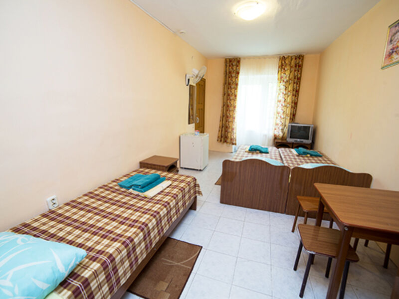 НедостаткиОтсутствует вытяжка в номере, питания недостаточно ни по порциям, ни по разнообразию. На пляже пансионата много местных.