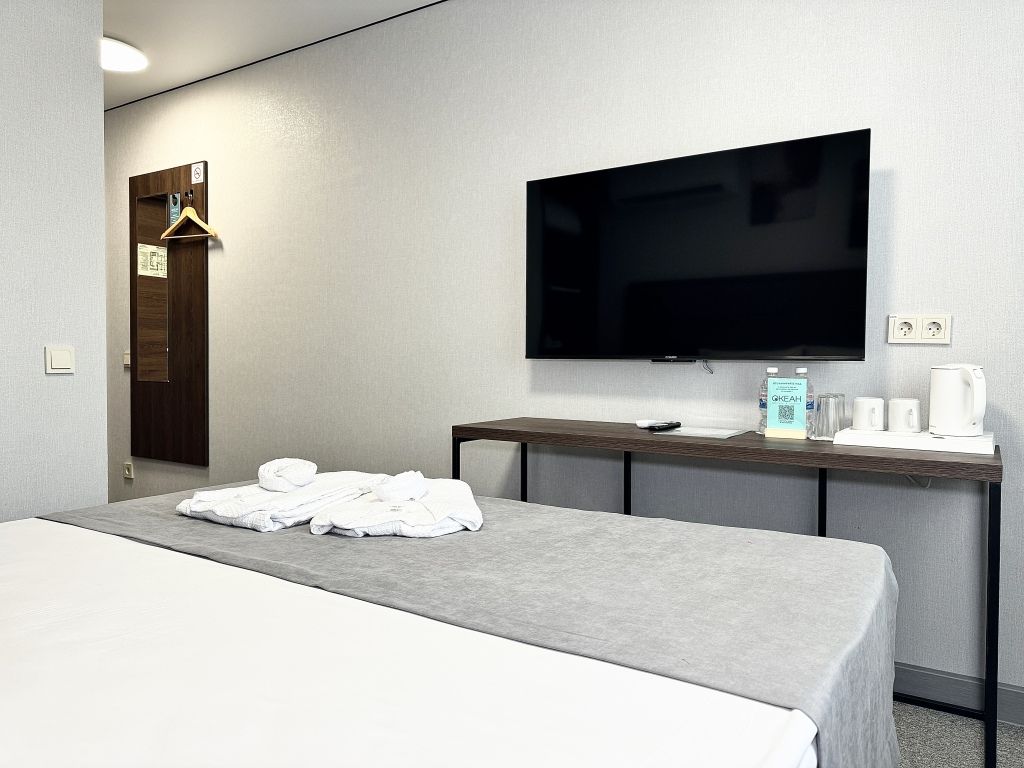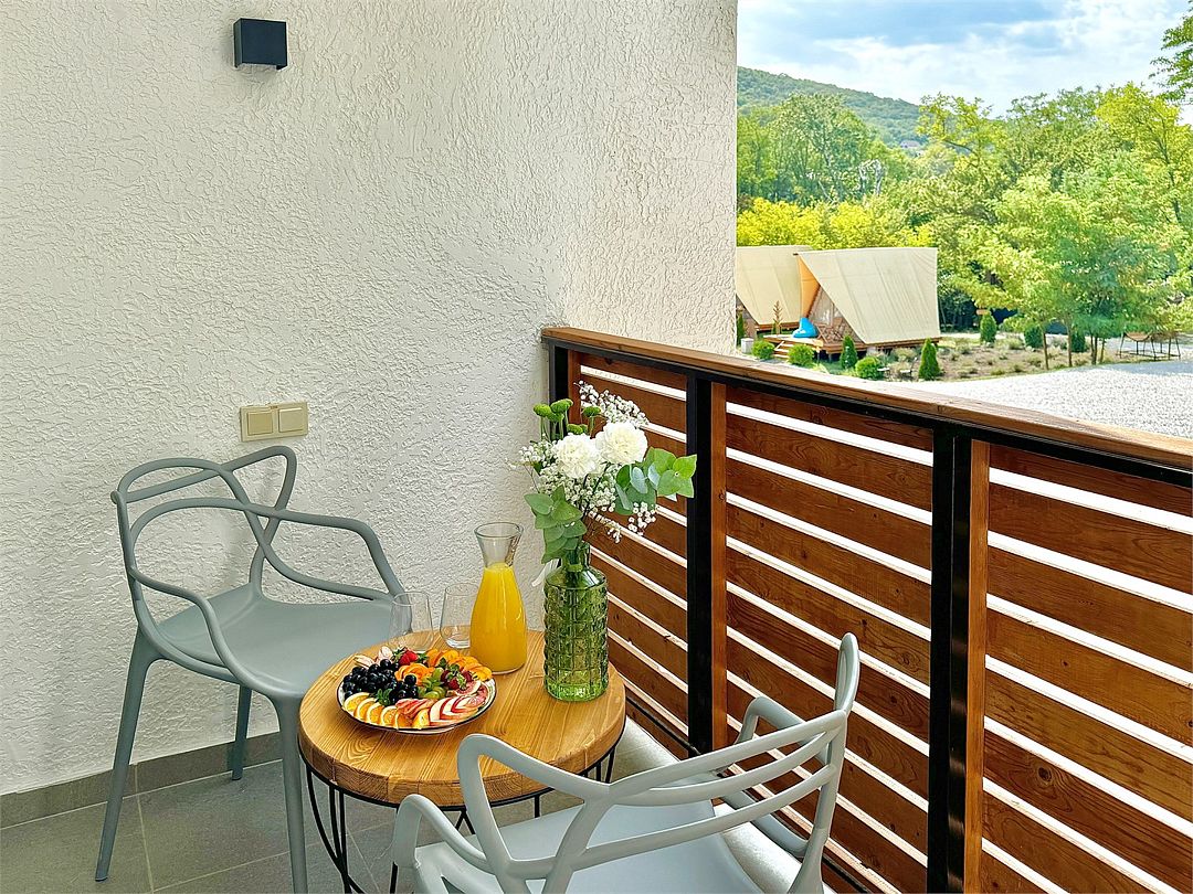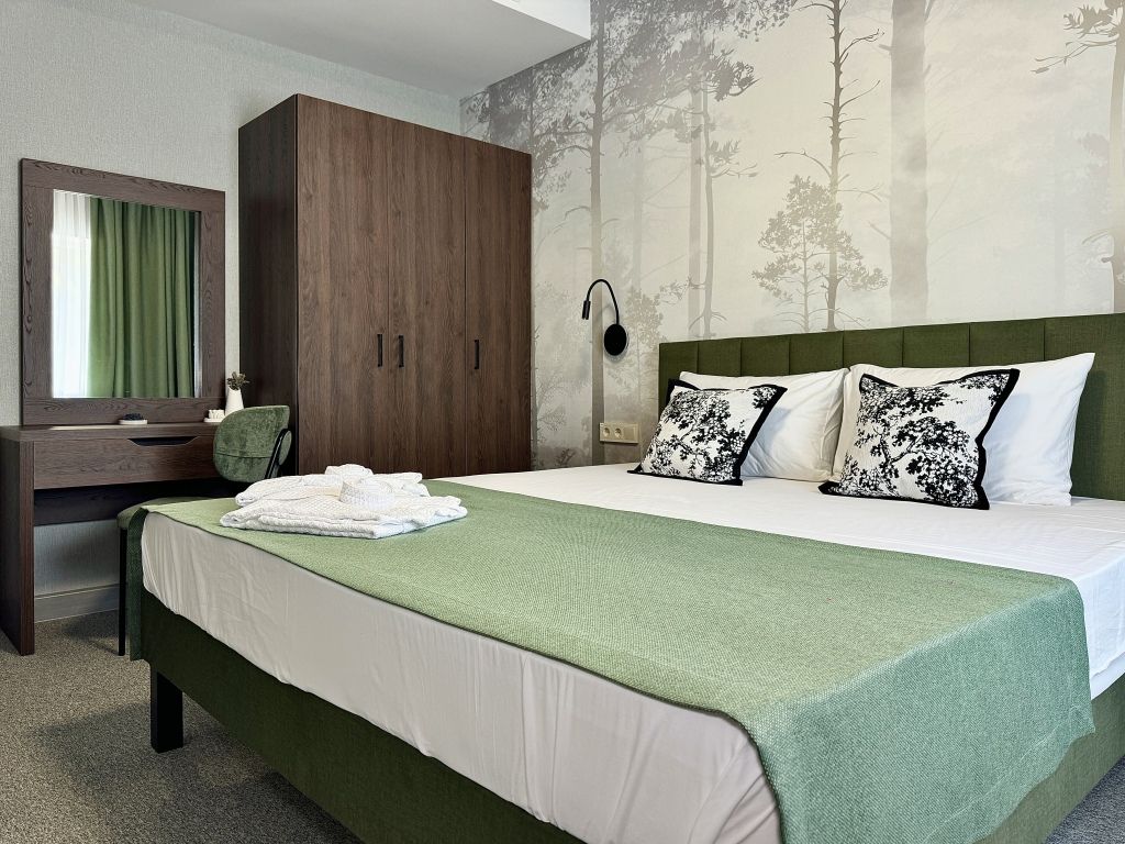Wi-Fi, интернет, кондиционер, система климат-контроля, светильник, фен, душевая кабина, санузел, банные принадлежности, халаты, банные полотенца, тапочки, косметические средства, терраса, двуспальная кровать, гладильная доска, ортопедический матрас, стулья, вешалки, зеркало, комод, пуфики, сейф, унитаз, питьевая вода, кресло, стаканы, стол, туалетные средства, туалет, сушилка для белья, раскладной диван, вид на горы, вид на лес, онлайн-регистрация до заезда, бутилированная вода, без питомцевВ гостиничном номере