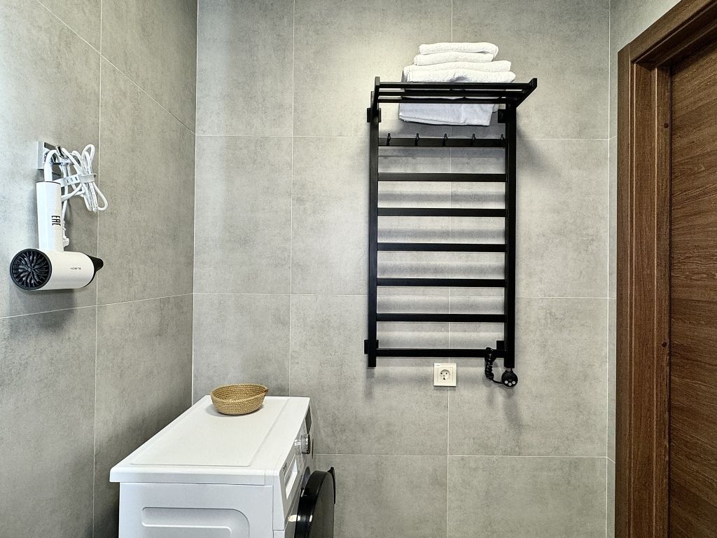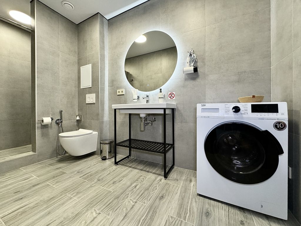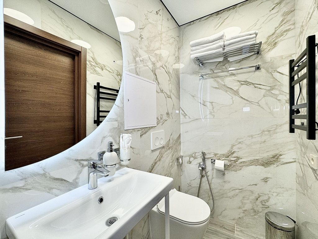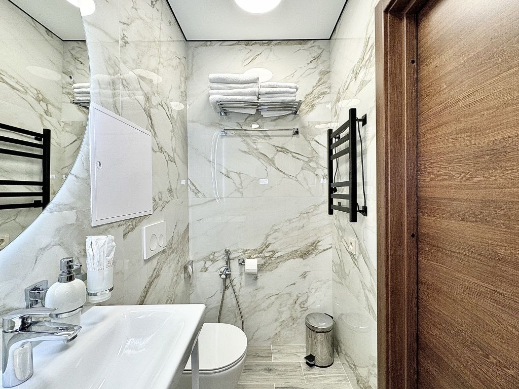 Ванная комната находится в шаговой доступности.