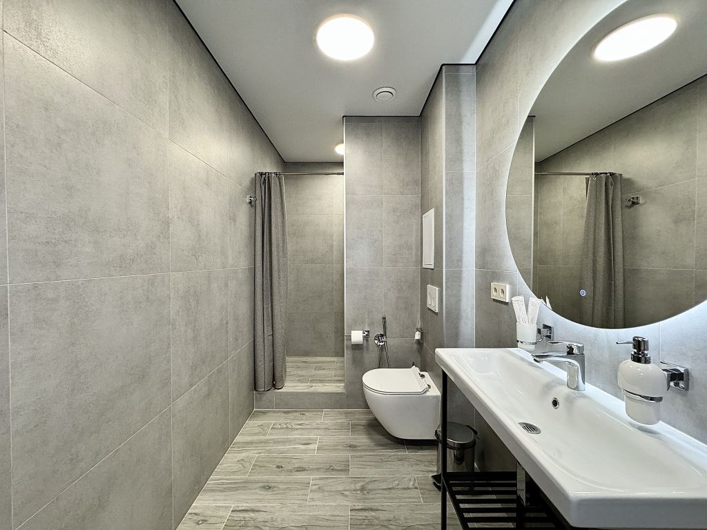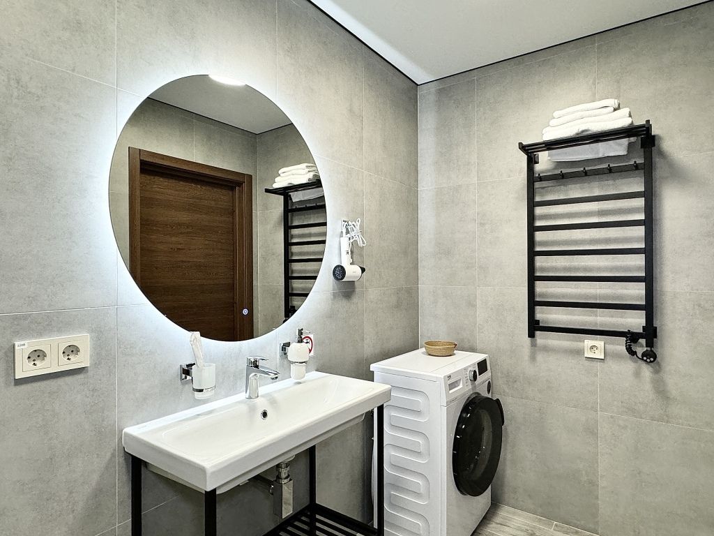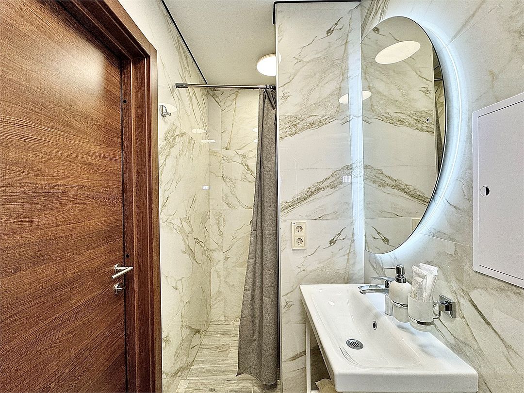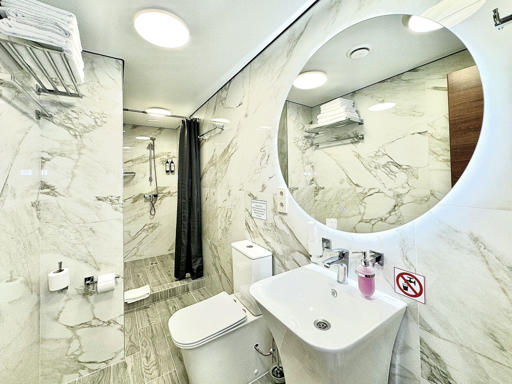 Ванная комната находится в шаговой доступности.