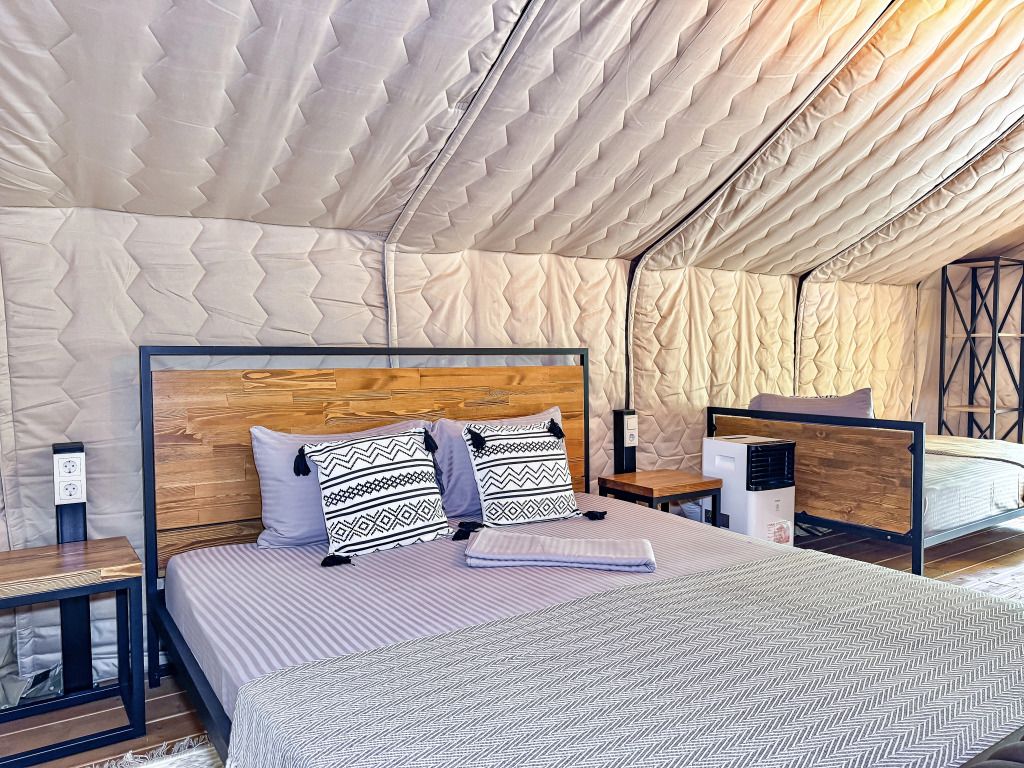 Сафари Семейный — это идеальное место для проведения отпуска с семьей. Просторная приватная зона с банным чаном создает атмосферу уединения и спокойствия, позволяя гостям наслаждаться отдыхом на свежем воздухе. Уютная беседка служит прекрасным местом для вечерних встреч, где можно провести время в компании родных. Сафари Семейный рассчитан на 4 основных места и одно дополнительное. В стоимость номера входит: - завтрак - беседка - два подогреваемых бассейна - экологичный трансфер на пляж (гольф-кар) - детская площадка - площадка для кроссфита - пати-тент для занятий йогой - площадка для пляжного волейбола - парковка - костровое место Пользование горячим чаном за дополнительную плату.Услуги и удобства