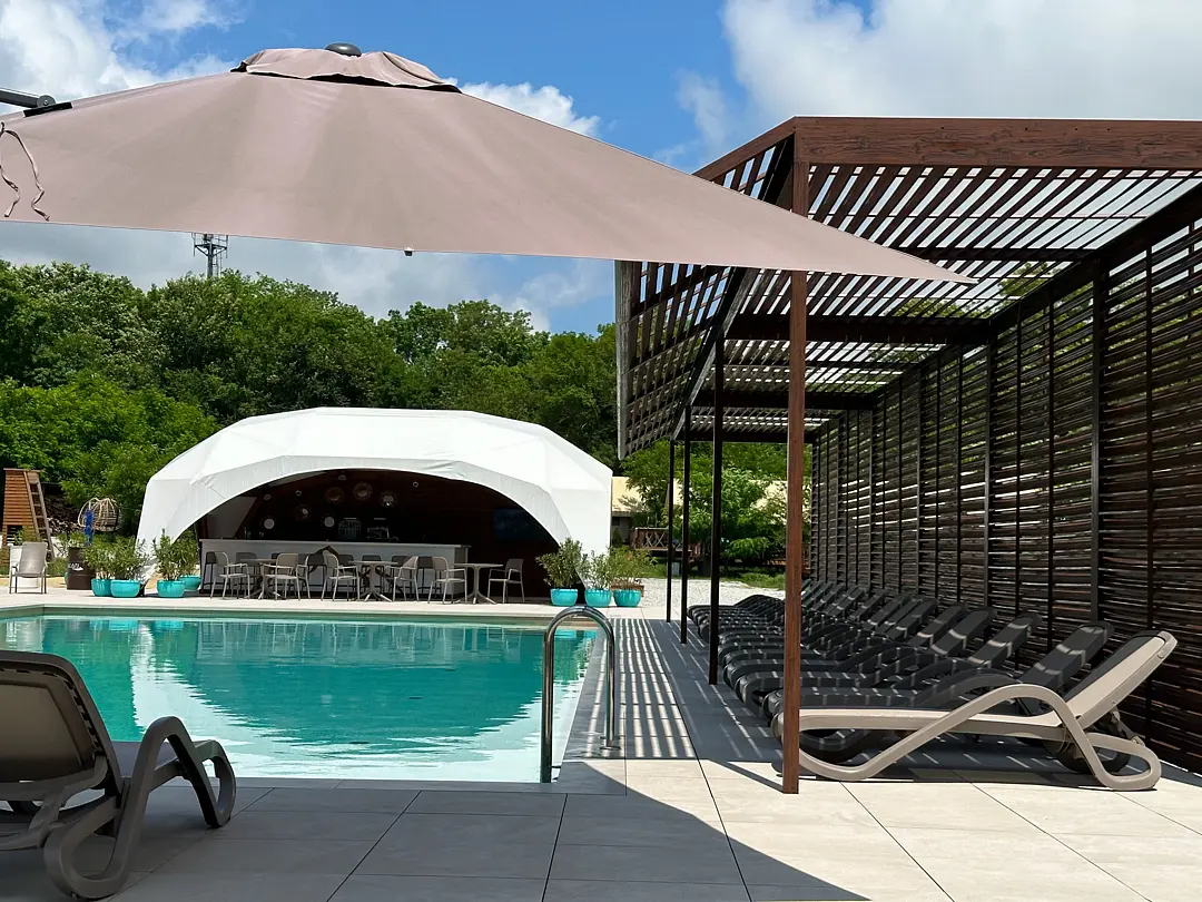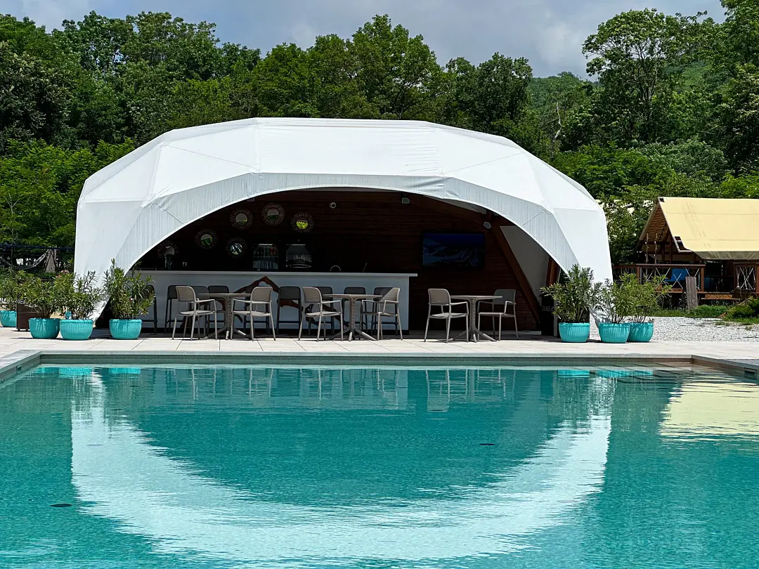 Экоотель предоставляет возможность отдохнуть в бассейне на свежем воздухе. Чистая вода, зелень и удобные шезлонги помогут расслабиться и восстановить силы.