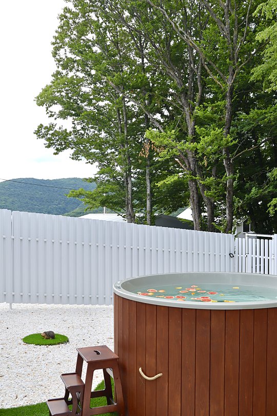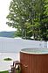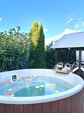 - Подогреваемая купель с аэромассажем и подсветкой. Возможность расслабиться под открытым небом, наблюдая за звездами, слушая шелест листвы и пение птиц — незабываемо.