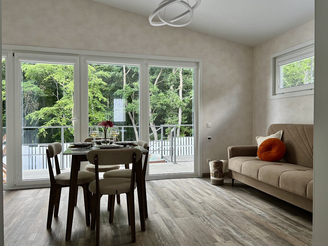 - Лес. Прямой выход в лес сразу из приватного дворика. Шелест листвы вместо городского гула, пение птиц вместо сигналов машин, уникальная возможность наполниться энергией.