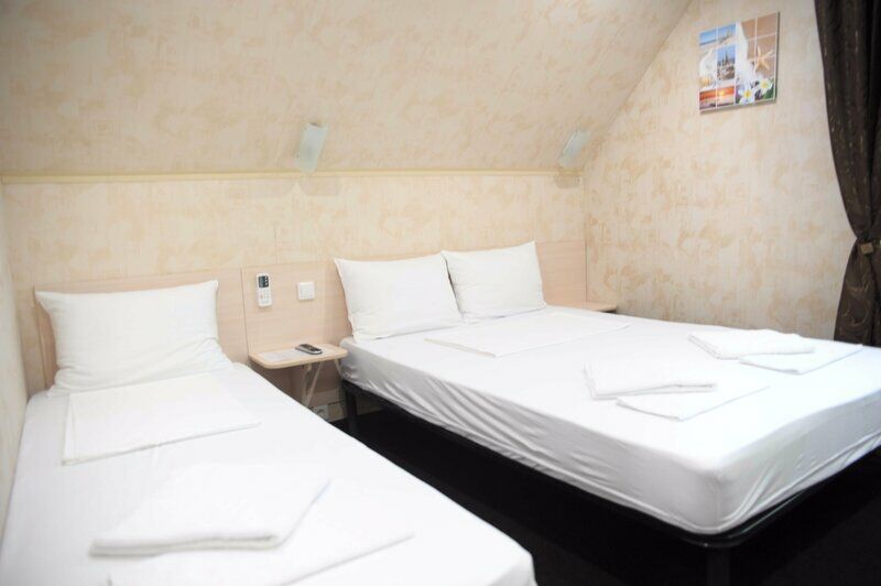 Одна односпальная кровать, одна двуспальная кроватьВ гостиничном номере