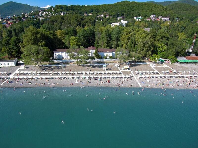 Путь к морю проходит через тенистую территорию между двух санаториев «Лазаревское» и «Колос».