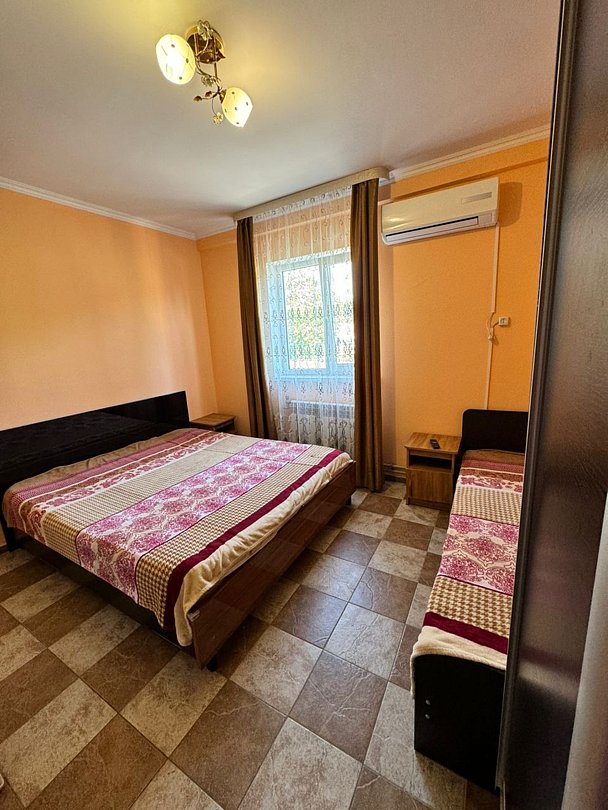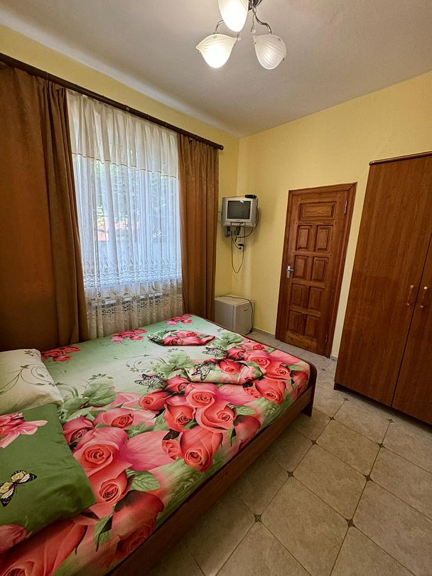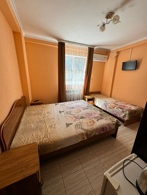 В распоряжении гостей 2-х ,3-х ,4-х местные номера , собственный сан узел , душ, кондиционер,холодильник , телевизор,шкаф. Гости могут воспользоваться бесплатно стиральной машинкой которая находится на первом этаже а также на каждом этаже утюг и гладильная доска.Горячая вода круглосуточно ! На первом этаже есть кухня для самостоятельного приготовления пищи ,для этого есть все необходимые принадлежности .