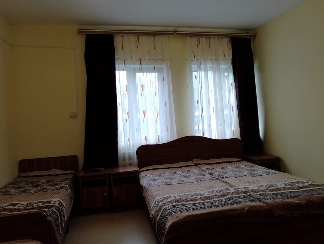 В номере есть туалет ,душ,телевизор,холодильник ,кондиционер,2-х спальная кровать ,односпальная кровать,чайник ,фен,отопление .В номере