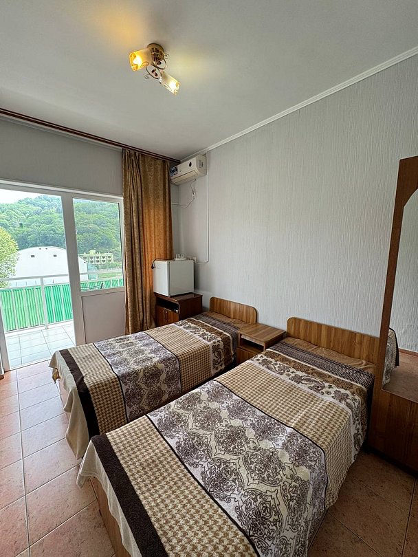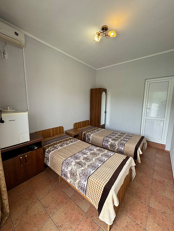 .В номере есть туалет ,душ,телевизор,холодильник,кондиционер,2-х спальная кровать ,отопление..В номере