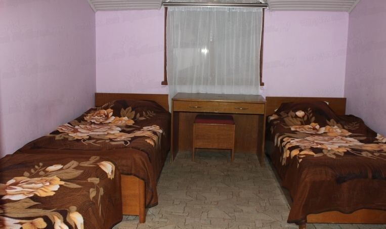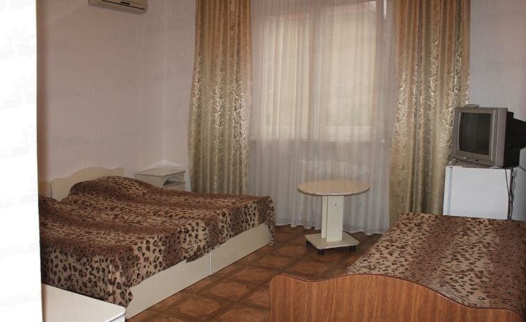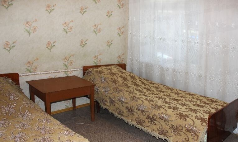 В номере: две полуторные кровати, телевизор, холодильник, кондиционер, шифоньер, тумбочки, журнальный столик. Санузел на этаже.