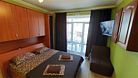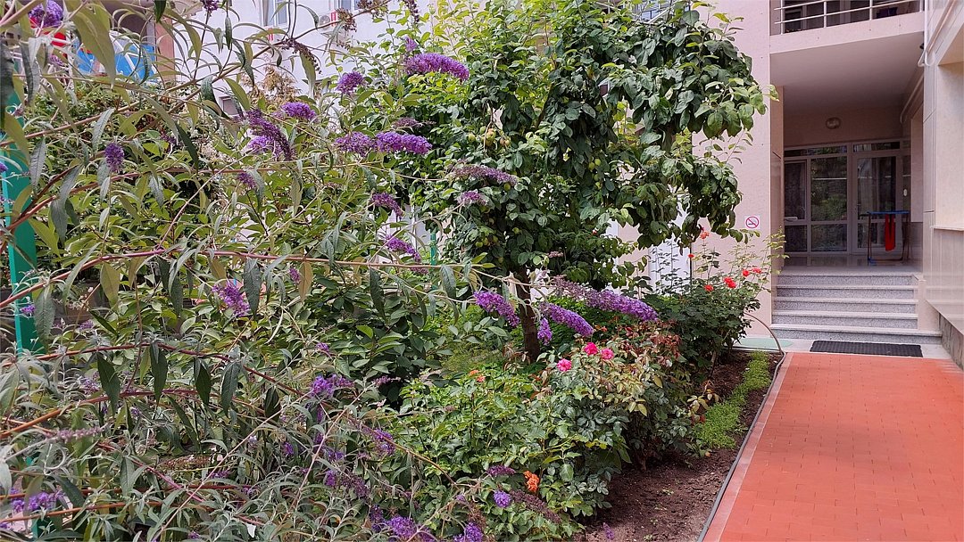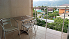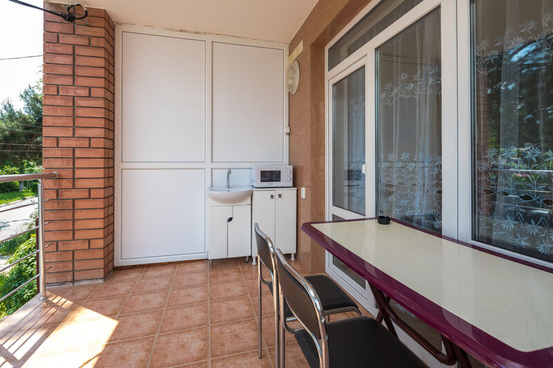 Первый номер выходил на улицу. Улица не шумная (как и сам район), вид отличный. Тень в обед создает хвойное дерево. Не жарко. Сам номер очень чистый и уютный, как будто никто не жил в нем до этого. Балкон большой, похож на мини кухню :) в добавок к столу, микроволновке, е-чайнику даже умывальник выведен :) очень удобно оказалось.